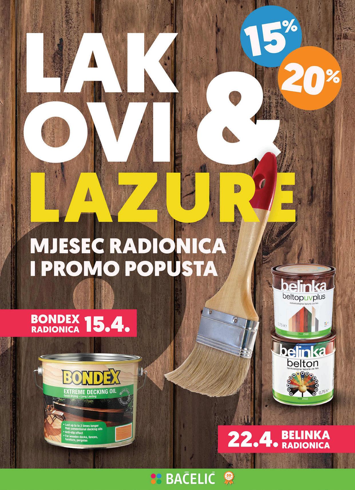 NA CIJELI ASORTIMAN 15 BONDEX TEAK OIL 0,75 L, 2,5 L BONDEX EXTREME DECKING OIL 2,5 L BONDEX DECKING OIL 2,5 L SVI TONOVI € 266,42KN AKCIJA! 3536 € 219,86KN AKCIJA! 2918 ULJENA VODENOJ OSNOVIZAZAŠTITU VANJSKIHDRVENIH TERASAI FASADA Najniža cijena u 30 dana: 41,60 € / 313,44 kn Najniža cijena u 30 dana: 34,33 € / 258,66 kn