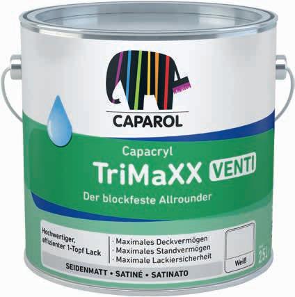 Maksimalna pokrivnost i izdržljivost za savršene površine. Vodorazrjedivi lak sa kvalitetom obrade otapalnog. THE POWER OF SURFACE. NOVO! € 135,84KN AKCIJA! 1803 Najniža cijena u 30 dana: 21,21 € / 159,81 kn CAPAROL CAPACRYL TRIMAXX VENTI 0,75L WEISS MAKSIMALNA POKRIVNOST I IZDRŽLJIVOST ZAPOVRŠINESAVRŠENE SVI TONOVI 15