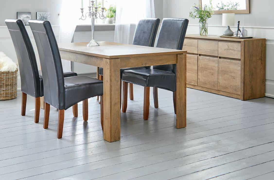 VEDDE STOL + BAKKELY STOLIC Stol: Ukrasni furnir. Š90xD160xV76 cm. Stolice: Umjetna koža i masivna borovina. Stol 135 € / 1017,16 kn Stolica 50 € / 376,73 kn