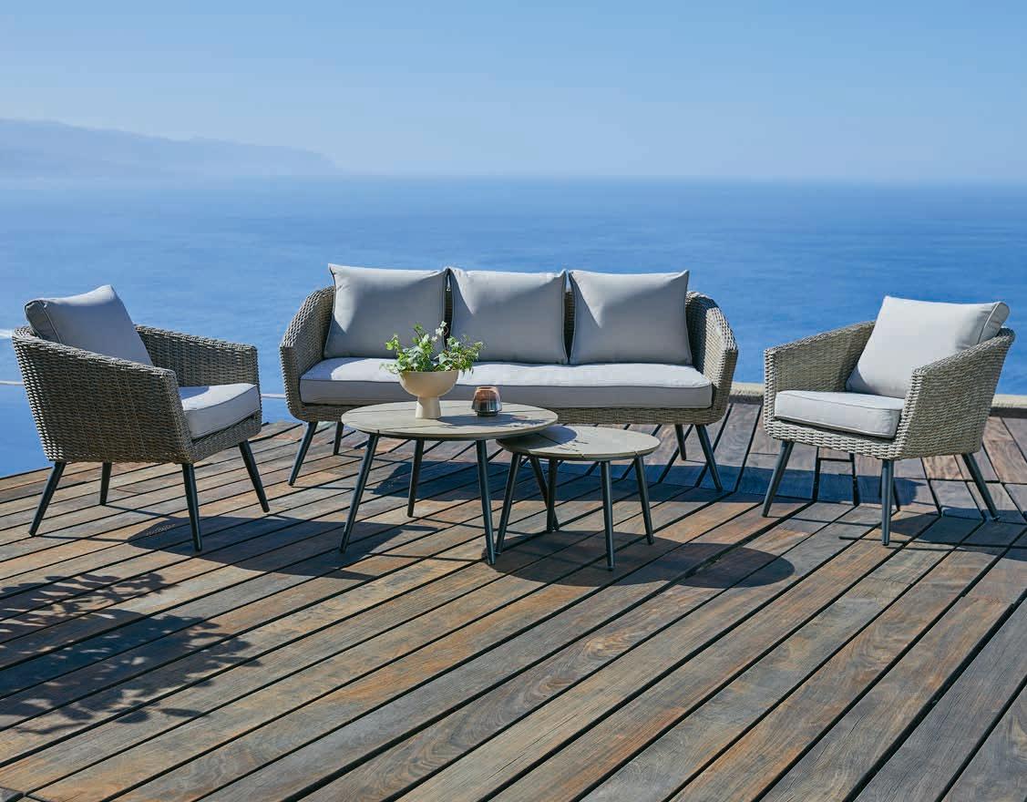 850 € DVOSJED + 2 STOLICE + STOL BEJSTRUP VRTNA GARNITURA Stol: Aluminij i umjetno drvo. Š60x D105xV41 cm. Dvosjed i stolice: Aluminij i tekstilen. S luksuznim jastucima s dugotrajnom, grubo trajnom navlakom. 1099 € / 8280,42 kn Uštedite 25% 600 € DVOSJED + 2 STOLICE + STOL VISBY VRTNA GARNITURA Stol: Čelik i umjetno drvo. Š75xD130xV68 cm. Produženi dvosjed i stolice: Čelik i petan. S luksuznim jastucima s dugotrajnom, grubo tkanom navlakom. 789 € / 5944,72 kn Uštedite 33% 800 € TROSJED + 2 STOLICE + 2 STOLA SANDBAKKE VRTNA GARNITURA Stol: Aluminij i umjetno drvo. Ø72/53xV42/36 cm. Trosjed i stolice: Aluminij i petan. S luksuznim jastucima s dugotrajnom, grubo tkanom navlakom. 1199 € / 9033,87 kn /6404 33 kn /452070 kn /602760 kn 3700361 3700256 3700259
