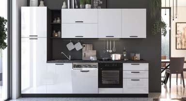 Kuhinja INFINITY s aparatima*: hladnjak + perilica + napa + pećnica + ploča (staklokeramika) + sudoper, dužina 330cm, visina 216cm, bijela sjaj, dostupna u tortora sjaj boji.