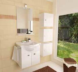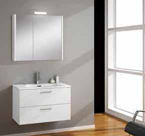 Kopalniški blok Best 80 2 x enojni predalnik, 1 x keramični umivalnik, ogledalo, visoka stenska omarica