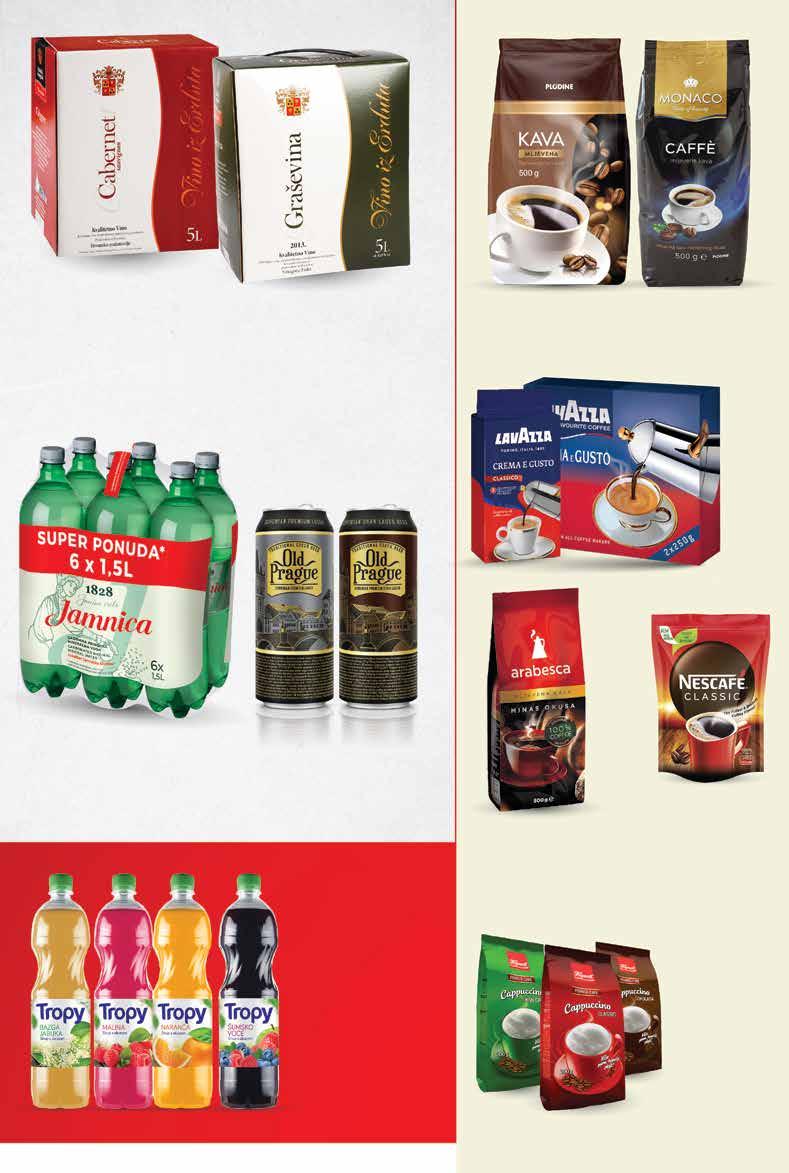CORONA Svijetlo pivo udio alkohola 4,5% 0,355 l MATISS Liker Pina Colada ili čokolada 0,7 l FRAGARIA Jabučni sok 100% Hrvatska 5 l LIVE Sok 100% Premium razne vrste 1 l STRANGE LUVE Gin Original ili Pink udio alkohola 40% 0,7 l Prilika vikenda!Super prilika! Prilika tjedna! 7 50 € 56.51 kn 1 l = 10,71 € / 80,73 kn -22% 9.65 € / 72.71 kn Teranino udio alkohola 16% 0,5 l CREAM CLUB Krem liker s whiskyjem udio alkohola 17% 0,7 l Prilika vikenda!Super prilika! Prilika tjedna! 7 77 € 58.54 kn 1 l = 15,54 € / 117,08 kn -16% 9.29 € / 70.00 kn Prilika vikenda!Super prilika! Prilika tjedna! 4 99 € 37.60 kn 1 l = 7,13 € / 53,71 kn -21% 6.37 € / 47.99 kn Prilika vikenda!Super prilika! Prilika tjedna! 1 79 € 13.49 kn 1 l = 5,04 € / 38,00 kn -15% 2.12 € / 15.97 kn Prilika vikenda!Super prilika! Prilika tjedna! 8 89 € 66.98 kn 1 l = 12,70 € / 95,69 kn -16% 10.62 € / 80.02 kn Prilika vikenda! Super prilika! Prilika tjedna! 4 35 € 32.78 kn -34% 6.63 € / 49.95 kn 1 l = 0,87 € / 6,56 kn 100% voće 5 l 100% voće Fotografije proizvoda ne moraju u potpunosti odgovarati stvarnom izgledu proizvoda. Kupnja je moguća samo u količinama primjerenim za kućanstvo. Sve navedene cijene izražene su u kunama s PDV-om. Ne odgovaramo za tiskarske pogreške. 8 Sve navedene cijene izražene su u eurima i kunama s PDV-om. Fiksni tečaj konverzije €/kn: pogreške.