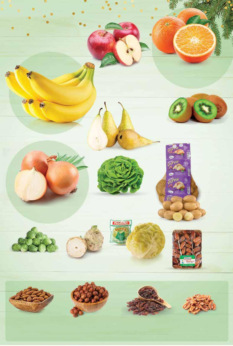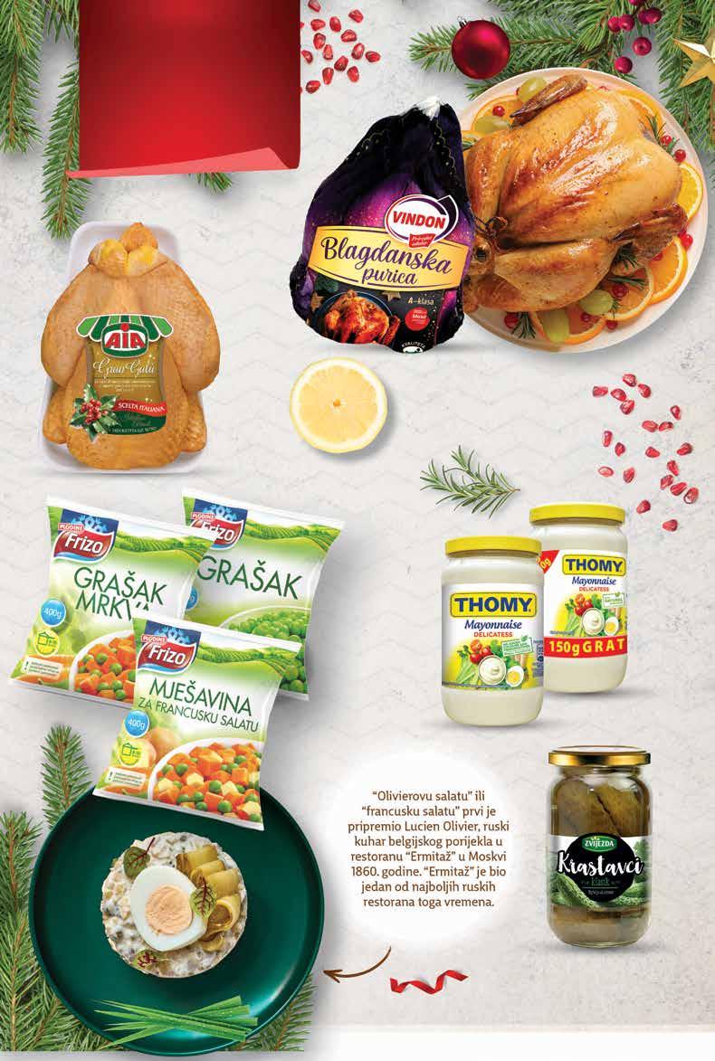 Bakalar na bijelo 1 kg COCA-COLA Gazirani napitak 2x 2 l 1 l = 5,87 kn 1 l = 0,78 € MERCI Bombonijera Finest selection Gross 400 g 1 kg = 149,98 kn 1 kg = 19,90 € RIO MARE Komadi tune razne vrste *ocijeđene mase od 112 do 160 g 160 g 1 kg = 116,58 - 124,91 kn 1 kg = 15,50 - 16,61 € Janjetina, odojak i prasetina za pečenje svježe, na pultu 1 kg SUPER PONUDA! 11999 kn 15,93 € SUPER PONUDA! 2349 kn 3,12 € SUPER PONUDA! 5999 kn 7,96 € SUPER PONUDA! 12499 kn 16,59 € SUPER PONUDA! 1399 kn 1,86 € -44% 24,99 kn 3,32 € POTRAŽI NA USLUŽNOM PULTU od SRIJEDE 21.12. do 27.12. Ponuda vrijedi od srijede 21.12. do utorka 27.12.2022. ili do isteka zaliha. Sve cijene su izražene u kunama i eurima s PDV-om. Kupovina je moguća samo u količinama predviđenim za kućanstvo. Fotografije ne moraju u potpunosti odgovarati stvarnom izgledu proizvoda. Ispričavamo se zbog mogućih tiskarskih pogrešaka. Fiksni tečaj konverzije €/kn: 7,53450 Izdanje 51/2022