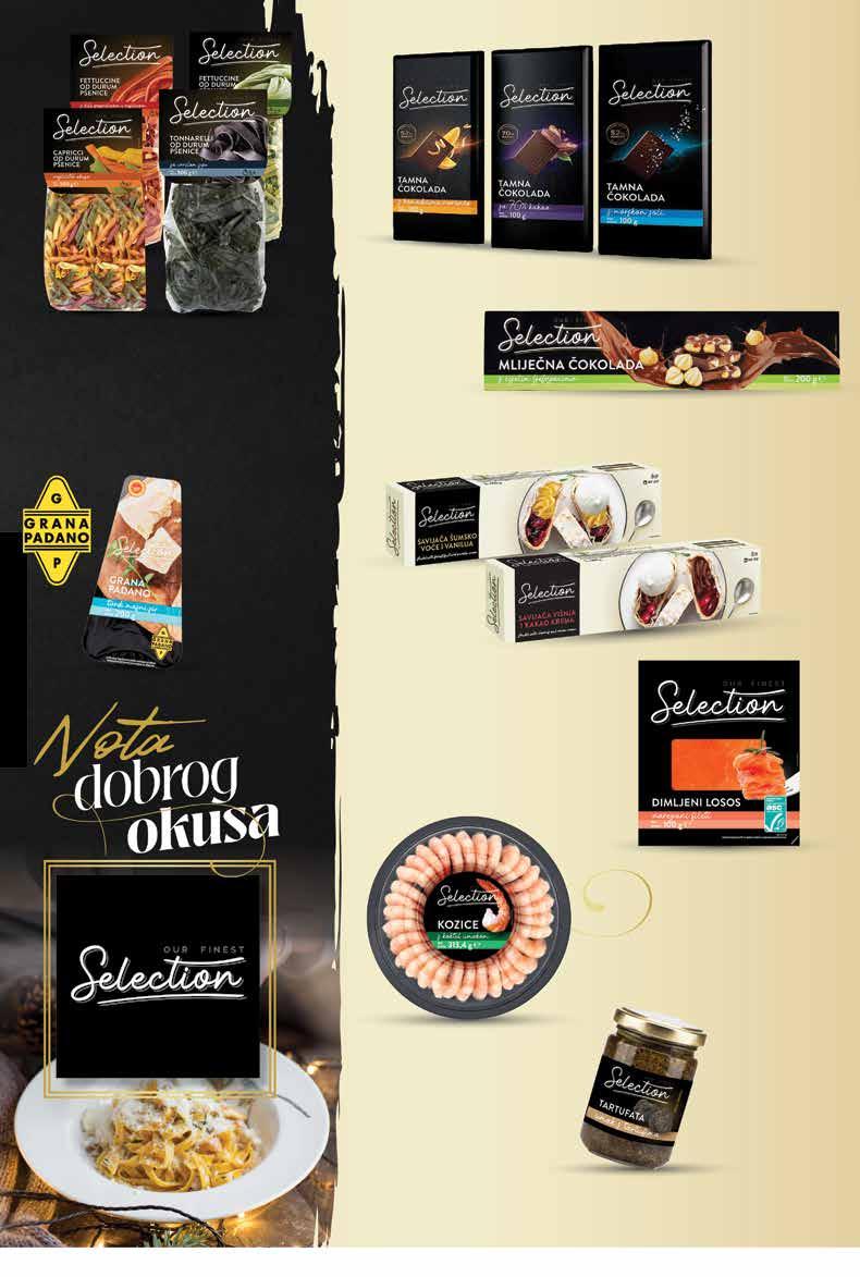 SELECTION Umak od tartufa 90 g 1 kg = 322,11 kn 1 kg = 42,78 € 2899 kn 3,85 € SELECTION Čokolada cijeli lješnjak 200 g 1 kg = 74,95 kn 1 kg = 9,95 € 1499 kn 1,99 € SELECTION Grana Padano 200 g 1 kg = 129,95 kn 1 kg = 17,25 € 2599 kn 3,45 € SELECTION Tjestenina razne vrste 500 g 1 kg = 27,98 kn 1 kg = 3,72 € 1399 kn 1,86 € SELECTION Dimljeni losos 100 g 1 kg = 269,90 kn 1 kg = 35,80 € 2699 kn 3,58 € SELECTION Savijača višnja - kakao ili vanilijašumsko voće smrznuto 500 g 1 kg = 25,98 kn 1 kg = 3,44 € 1299 kn 1,72 € SELECTION Kozice s cocktail umakom smrznute 313,40 g 1 kg = 159,51 kn 1 kg = 21,16 € 4999 kn 6,63 € 899 kn 1,19 € SELECTION Čokolada tamna razne vrste 100 g 1 kg = 89,90 kn 1 kg = 11,93 € Novo u ponudi ! Fotografije proizvoda ne moraju u potpunosti odgovarati stvarnom izgledu proizvoda. Kupnja je moguća samo u količinama primjerenim za kućanstvo. Sve navedene cijene izražene su u kunama i eurima s PDV-om. Fiksni tečaj konverzije €/kn: 7,53450. Ne odgovaramo za tiskarske pogreške. 2