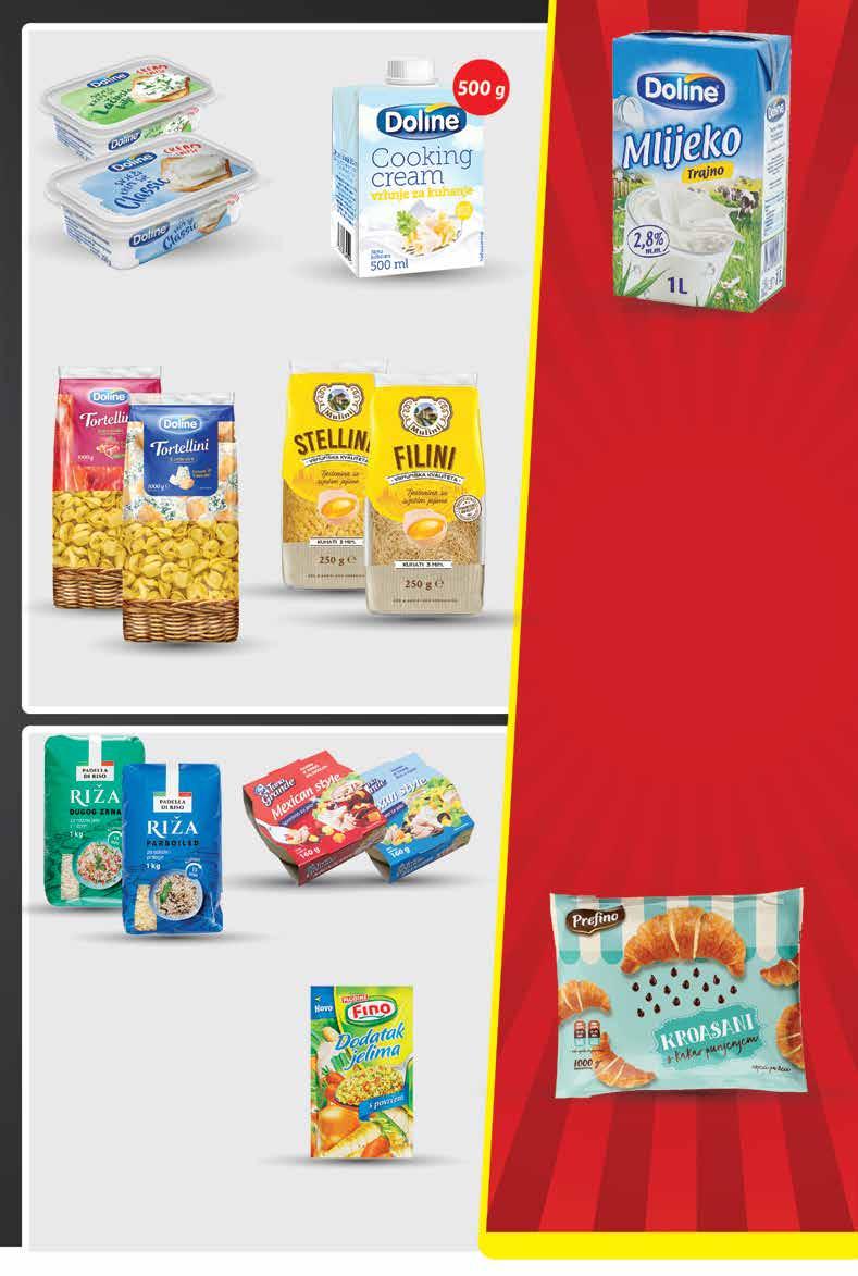 DOLINE Vrhnje za kuhanje 20% m.m. DOLINE Svježi krem sir ili krem sir sa začinima FINO Dodatak jelima sa sušenim povrćem vrećica 500 g PLODINE Tuna salata Mexicana ili Texana 160 g -00% 0.00 € / 00.00 kn Prilika vikenda!Super prilika! Prilika tjedna! 1 05 € 7.91 kn 1 kg = 5,25 € / 39,55 kn 200 g DOLINE Trajno mlijeko 2,8% m.m. -00% 0.00 € / 00.00 kn Prilika vikenda!Super prilika! Prilika tjedna! 1 85 € 13.94 kn 1 kg = 3,70 € / 27,88 kn 500 g Prilika vikenda!Super prilika! Prilika tjedna! 0 99 € 7.46 kn 1 kg = 1,98 € / 14,92 kn -25% 1.33 € / 10.02 kn Prilika vikenda!Super prilika! Prilika tjedna! 1 86 € 14.01 kn 1 kg = 12,92 € / 97,29 kn -26% 2.52 € / 18.99 kn Prilika vikenda!Super prilika! Prilika tjedna! 2 90 € 21.85 kn 1 kg Prilika vikenda!Super prilika! Prilika tjedna! 0 95 € 7.16 kn 1 l PADELLA DI RISO Riža dugo zrno ili parboiled 1 kg 1 kg 1 kg MULINI Tjestenina filini ili stelline 250 g PREFINO Kroasani s kakao punjenjem smrznuto Prilika vikenda!Super prilika! Prilika tjedna! 0 99 € 7.46 kn 1 kg = 3,96 € / 29,84 kn -16% 1.19 € / 8.97 kn Prilika vikenda!Super prilika! Prilika tjedna! 1 59 € 11.98 kn -14% 1.86 € / 14.01 kn VITA CUCINA Instant juha odabrani proizvodi 46 - 60 g -30% smrznuto DOLINE Tortellini šunka ili sir svježi -00% 0.00 € / 00.00 kn Prilika vikenda!Super prilika! Prilika tjedna! 2 79 € 21.02 kn 1 kg 1 kg PLATI MANJE Ti biraš, ti odlučuješ! Fotografije proizvoda ne moraju u potpunosti odgovarati stvarnom izgledu proizvoda. Kupnja je moguća samo u količinama primjerenim za kućanstvo. Sve navedene cijene izražene su u eurima i kunama s PDV-om. Fiksni tečaj konverzije €/kn: 7,53450. Ne odgovaramo za tiskarske pogreške. 17