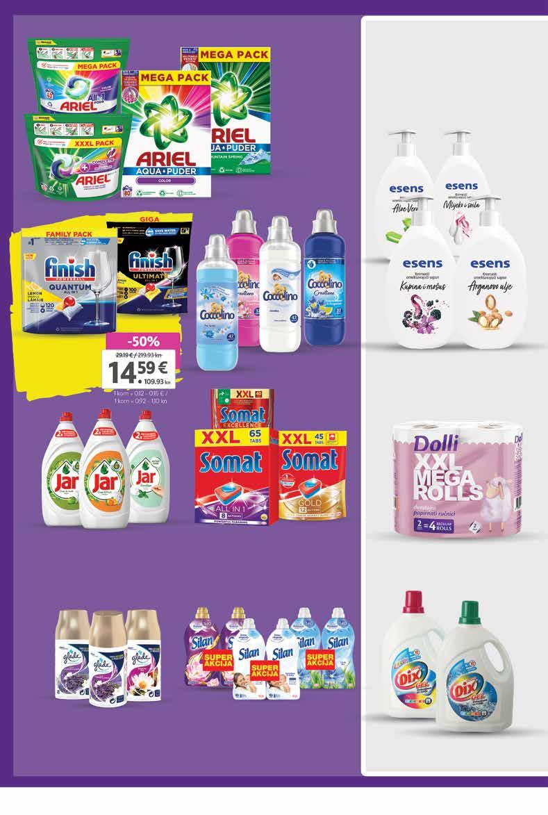 FINISH Tablete za perilicu posuđa Quantum 120 ili 100 komada ARIEL Deterdžent za rublje razne vrste 5,2 kg, 4,55 kg, 4,95 l, 66, 63, 60 ili 52 komada GLADE Osvježivač zraka refil razne vrste 269 ml JAR Deterdžent za posuđe razne vrste 1,35 l SOMAT Tablete za perilicu posuđa razne vrste 65, 45 ili 40 komada DOLLI Kuhinjski ručnici dvoslojni 100 listića DIX Deterdžent za rublje razne vrste 3 l ESENS Tekući sapun za ruke razne vrste 500 ml -00% 0.00 € / 00.00 kn Prilika vikenda!Super prilika! XXL ponuda 1 29 € 9.72 kn 1 rola = 0,65 € / 4,86 kn 2 role -00% 0.00 € / 00.00 kn Prilika vikenda!Super prilika! XXL ponuda 8 75 € 65.93 kn 1 kom = 0,13 - 0,22 € / 1 kom = 1,01 - 1,65 kn SILAN Omekšivač za rublje razne vrste 2x 1,8 l ili 2x 1,45 l -00% 0.00 € / 00.00 kn Prilika vikenda!Super prilika! XXL ponuda 6 10 € 45.96 kn 1 l = 1,69 - 2,10 € / 1 l = 12,77 - 15,85 kn Prilika vikenda!Super prilika! XXL ponuda 16 95 € 127.71 kn 1 kg = 3,26 - 3,73 € / 24,56 - 28,07 kn 1 l = 3,42 € / 25,80 kn 1 kom = 0,26 - 0,33 € / 1,94 - 2,46 kn COCCOLINO Omekšivači odabrani proizvodi -30% Prilika vikenda!Super prilika! Prilika tjedna! 1 19 € 8.97 kn 1 l = 2,38 € / 17,94 kn -30% 1.72 € / 12.96 kn Prilika vikenda!Super prilika! Prilika tjedna! 3 29 € 24.79 kn 1 l = 2,44 € / 18,36 kn -38% 5.31 € / 40.01 kn Prilika vikenda!Super prilika! Prilika tjedna! 3 05 € 22.98 kn 1 l = 11,34€ / 85,43 kn -50% 6.10 € / 45.96 kn Prilika vikenda!Super prilika! Prilika tjedna! 3 30 € 24.86 kn 1 l = 1,10 € / 8,29 kn -37% 5.31 € / 40.01 kn PLATI MANJE Ti biraš, ti odlučuješ!