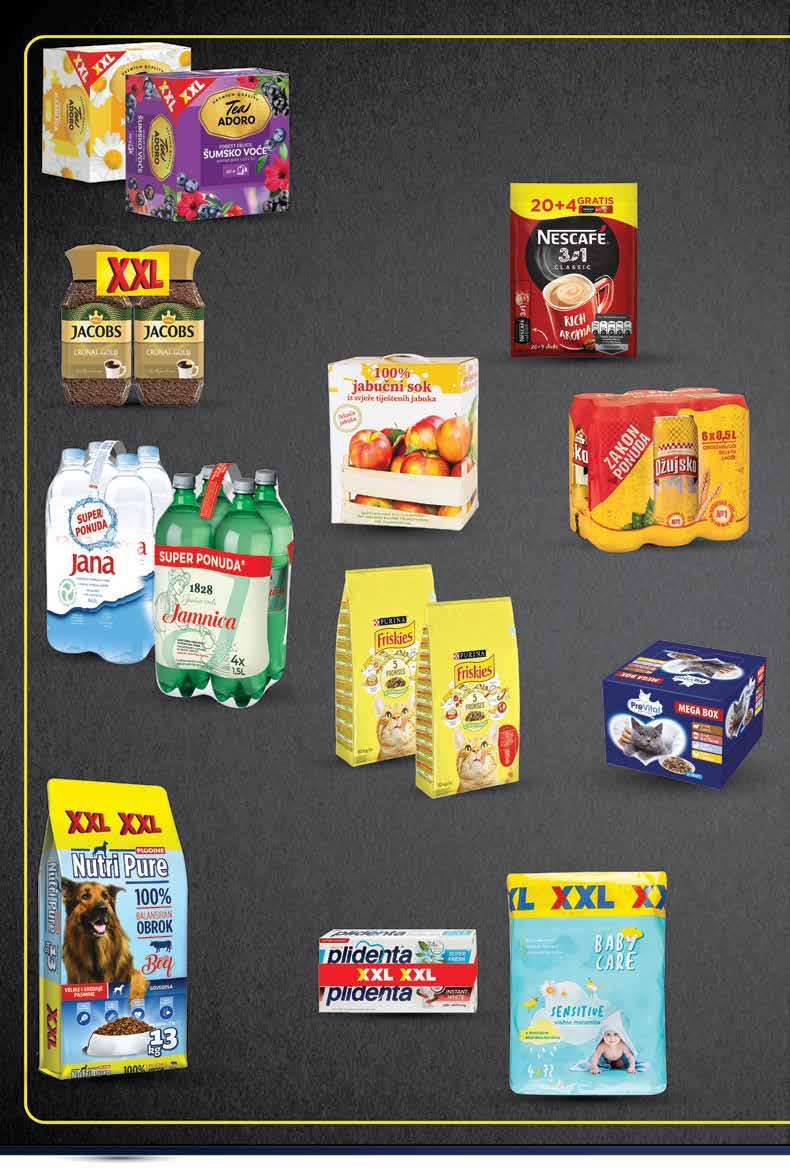 OŽUJSKO Svijetlo pivo udio alkohola 5% 6x 0,5 l PRE VITAL Hrana za mačke razni okusi 24x 100 g JAMNICA ILI JANA Mineralna voda gazirana ili negazirana JACOBS Instant kava Cronat Gold 2 x 200 g IVKOVIĆ Jabučni sok 100% 5 l TEA ADORO Čaj šumsko voće ili kamilica XXL NESCAFE Instant Kava classic 20 + 4 vrećice gratis 3u1 BABY CARE Vlažne maramice za djecu 4 x 72 komada PLIDENTA Zubna pasta 5 l 4x 72 kom 2 x 200 g 2 4 x 100 g Novo u ponudi ! Prilika vikenda!Super prilika! XXL ponuda 6 10 € 45.96 kn 1 l = 2,03€ / 15,32 kn -11% 6.90 € / 51.99 kn Prilika vikenda!Super prilika! XXL ponuda 6 63 € 49.95 kn 1 kg = 2,76 € / 20,81 kn -32% 9.82 € / 73.99 kn Prilika vikenda!Super prilika! XXL ponuda 14 60 € 110.00 kn 1 kg = 36,50 € / 275,00 kn -28% 20.44 € / 154.01 kn Prilika vikenda!Super prilika! XXL ponuda 4 44 € 33.45 kn 1 l = 0,89 € / 6,69 kn -33% 6.63 € / 49.95 kn NUTRI PURE Hrana za pse govedina XXL 13 kg FRISKIES Hrana za mačke govedina ili piletina 10 kg 13 kg 10 kg Prilika vikenda!Super prilika! XXL ponuda 13 27 € 99.98 kn 1 kg = 1,02 € / 7,69 kn -17% 16.16 € / 121.76 kn Prilika vikenda!Super prilika! XXL ponuda 26 49 € 199.59 kn 1 kg = 2,65 € / 19,96 kn -20% 33.18 € / 249.99 kn -00% 0.00 € / 00.00 kn Prilika vikenda!Super prilika! XXL ponuda 0 99 € 7.46 kn 1 kg = 1,24 - 2,48 € / 1 kg = 9,33 - 18,65 kn 40 - 80 g -00% 0.00 € / 00.00 kn Prilika vikenda!Super prilika! XXL ponuda 4 98 € 37.52 kn 1 kg = 15,09 € / 113,70kn 330 g -00% 0.00 € / 00.00 kn Prilika vikenda!Super prilika! XXL ponuda 3 18 € 23.96 kn 1 l = 0,53 € / 3,99 kn 4x 1,5 l -00% 0.00 € / 00.00 kn Prilika vikenda!Super prilika! XXL ponuda 1 99 € 14.99 kn 1 l = 2,65 € / 19,99 kn 2 x 75 ml -00% 0.00 € / 00.00 kn Prilika vikenda!Super prilika! XXL ponuda 2 65 € 19.97 kn 1 pak = 0,66 € / 4,99 kn -16% 3.18 € / 23.96 kn Fotografije proizvoda ne moraju u potpunosti odgovarati stvarnom izgledu proizvoda. Kupnja je moguća samo u količinama primjerenim za kućanstvo. Sve navedene cijene izražene su u eurima i kunama s PDV-om. Fiksni tečaj konverzije €/kn: 7,53450. Ne odgovaramo za tiskarske pogreške. 4