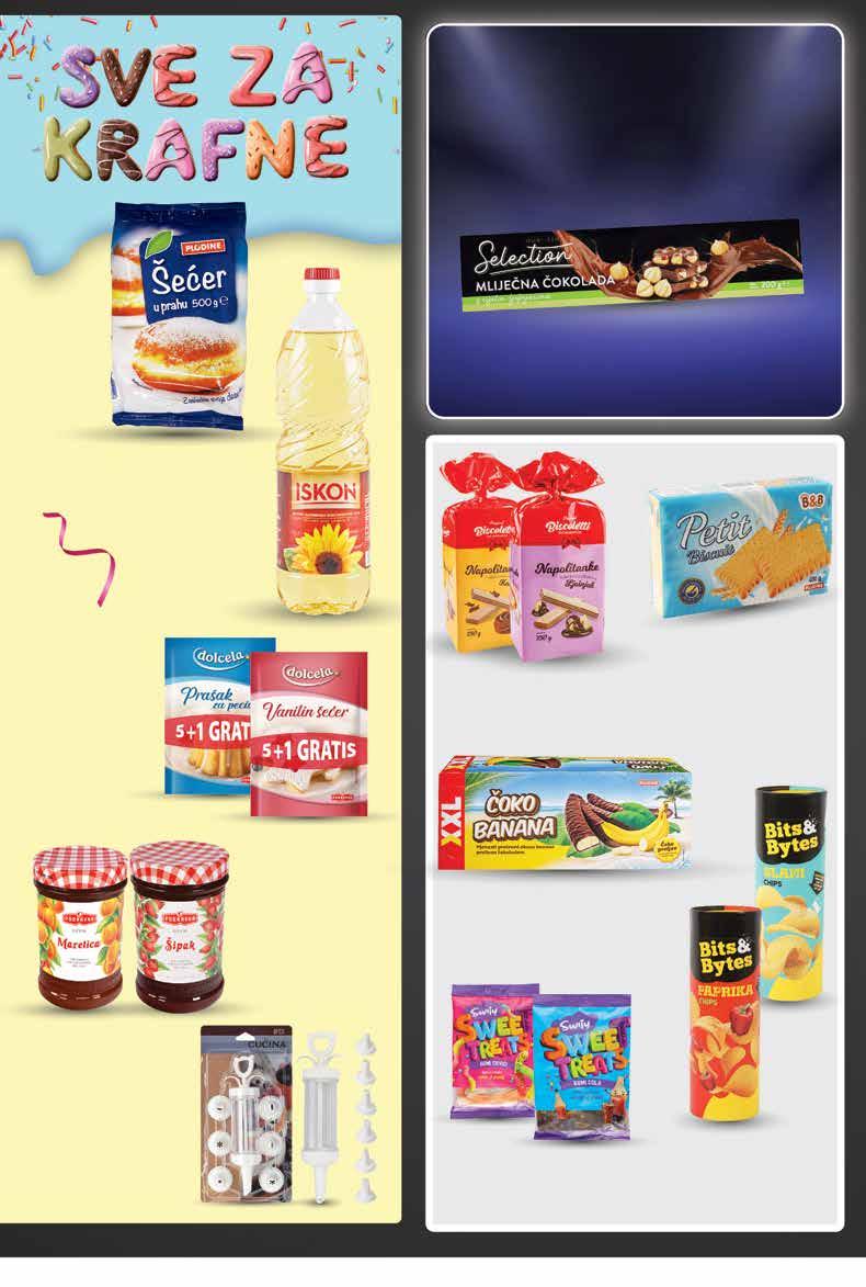 ISKON Suncokretovo ulje PODRAVKA Džem šipak ili marelica 670 g DOLCELA Vanilin šećer ili prašak za pecivo 6x 10 g ili 6x 12 g PLODINE Šećer u prahu 500 g BISCOLETTI Napolitanke kakao ili lješnjak PLODINE Choco banana XXL 800 g B&B Petit keks SELECTION Čokolada cijeli lješnjak 200 g -00% 0.00 € / 00.00 kn Prilika vikenda!Super prilika! Prilika tjedna! 1 99 € 14.99 kn -00% 0.00 € / 00.00 kn Prilika vikenda!Super prilika! Prilika tjedna! 1 98 € 14.92 kn 1 kg = 2,64 € / 19,89 kn 750 g 1 95 € 14.69 kn 1 kg = 9,75 € / 73,45 kn -00% 0.00 € / 00.00 kn Prilika vikenda!Super prilika! Prilika tjedna! 0 79 € 5.95 kn 1 kg = 1,98 € / 14,88 kn 400 g -00% 0.00 € / 00.00 kn Prilika vikenda!Super prilika! Prilika tjedna! 1 59 € 11.98 kn 1 l