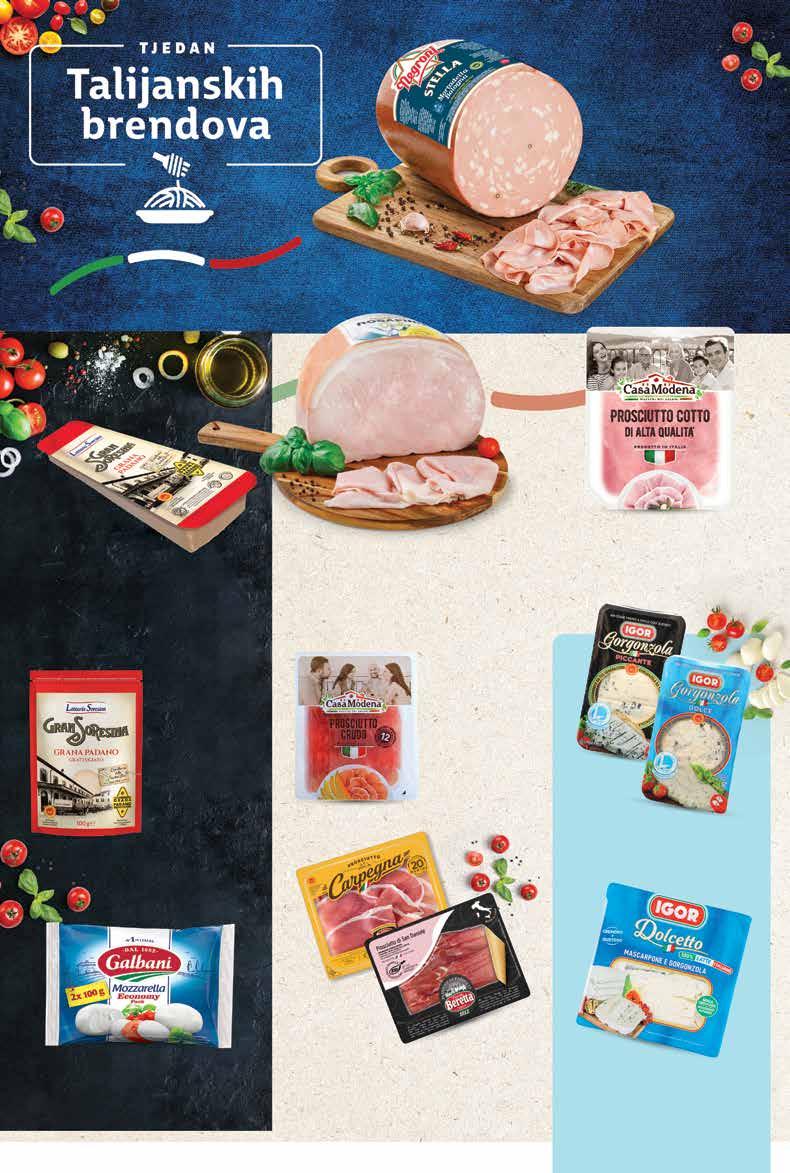GIALLO Kuhana šunka polutrajni proizvod 1 kg AIA Mortadela Bologna polutrajni proizvod 1 kg CASA MODENA Kuhana šunka polutrajni proizvod CASA MODENA Pršut narezak trajni proizvod GALBANI Mozzarella 2x 100 g IGOR Sir Gorgonzola piccante ili dolce LATTERIA SORESINA Sir Grana Padano LATTERIA SORESINA Sir Grana Padano ribani IGOR Sir Gorgonzola Mascarpone 3 55 € 26.75 kn 1 kg = 17,75 € / 133,75 kn 200 g 1 99 € 14.99 kn 1 kg = 19,90 € / 149,90 kn 100 g 2 10 € 15.82 kn 1 kg = 16,80 € / 126,56 kn 125 g 2 20 € 16.58 kn 1 kg = 27,50 € / 207,25 kn 80 g 3 15 € 23.73 kn 1 kg = 39,38 € / 296,63 kn 80 g POTRAŽI NA USLUŽNOM PULTU POTRAŽI NA USLUŽNOM PULTU BERETTA Pršut trajni naresci razne vrste Prilika vikenda!Super prilika! Prilika tjedna! 2 25 € 16.95 kn 1 kg = 11,25 € / 84,75 kn -15% 2.65 € / 19.97 kn 2 x 100 g Prilika tjedna! Super prilika! 2 29 € 17.25 kn 1 kg = 15,27 € / 115,00 kn 150 g Prilika tjedna! Super prilika! 2 79 € 21.02 kn 1 kg = 13,95 € / 105,10 kn 200 g Mortadela Bologna Prilika vikenda!Super prilika! Prilika tjedna! 6 99 € 52.67 kn -16% 8.36 € / 62.99 kn Prilika vikenda!Super prilika! Prilika tjedna! 6 63 € 49.95 kn -28% 9.28 € / 69.92 kn