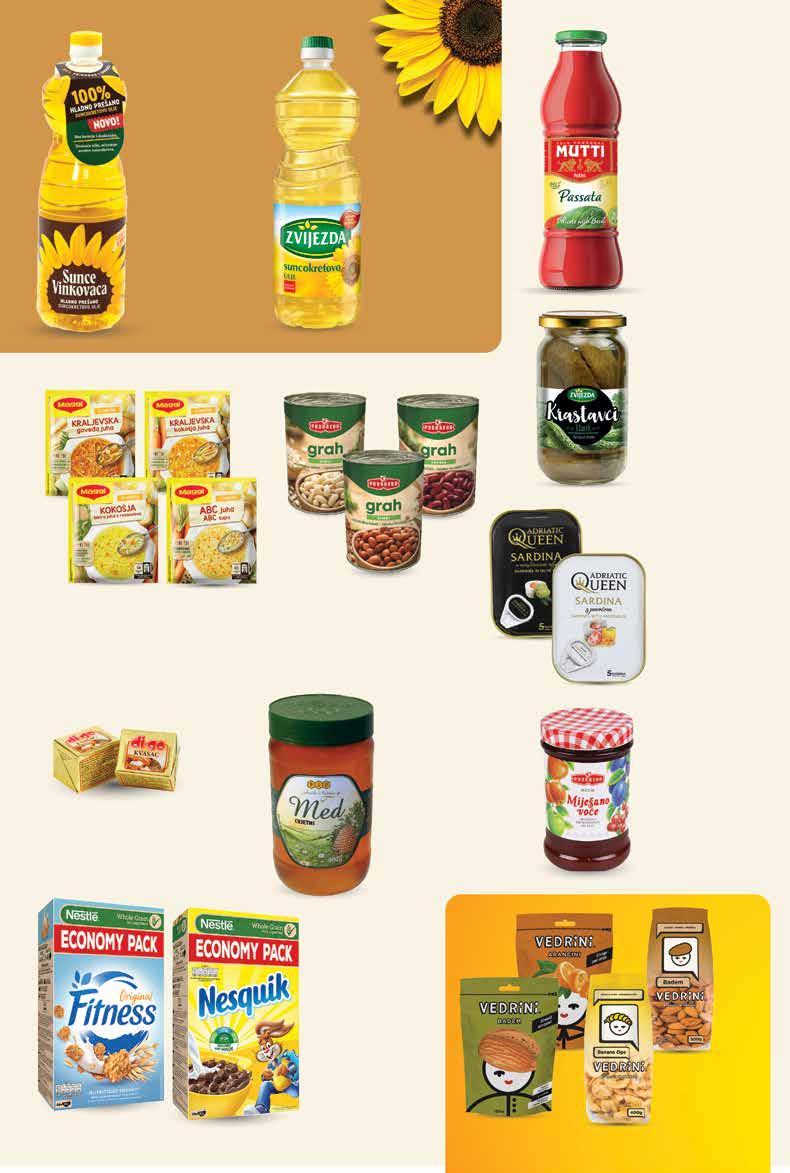 DI-GO Svježi kvasac PIP PČELARSTVO Cvjetni med 900 g PODRAVKA Džem miješano voće 690 g PODRAVKA Grah crveni, smeđi ili bijeli *ocijeđena masa 230 g 400 g TVORNICA ULJA VINKOVCI Suncokretovo ulje hladno prešano 1 l MAGGI Juhe odabrane vrste 44 - 62 g MUTTI Pasirana rajčica basilico 700 g ZVIJEZDA Krastavci II. klasa *ocijeđena masa 330 ml 720 ml NESTLE Žitarice razne vrste 600 - 625 g ADRIATIC QUEEN Sardina u maslinovom ulju ili s povrćem 105 g Prilika vikenda!Super prilika! Prilika tjedna! 2 55 € 19.21 kn -20% 3.22 € / 24.26 kn Super prilika! Prilika tjedna!-00% 0.00 € / 00.00 kn tjedna! 1 71 € 12.88 kn 1 l Prilika vikenda!Super prilika! Prilika tjedna! 1 99 € 14.99 kn 1 l = 6,03 € / 45,42 kn -24% 2.65 € / 19.97 kn Prilika vikenda!Super prilika! Prilika tjedna! 1 72 € 12.96 kn 1 kg = 2,49 € / 18,78 kn -31% 2.52 € / 18.99 kn Prilika vikenda!Super prilika! Prilika tjedna! 5 35 € 40.31 kn 1 kg = 5,94 € / 44,79 kn -32% 7.96 € / 59.97 kn Prilika vikenda!Super prilika! Prilika tjedna! 0 69 € 5.20 kn 1 kg = 11,13 - 15,68 € / 1 kg = 83,87 - 118,14 kn -13% 0.80 € / 6.03 kn Prilika vikenda!Super prilika! Prilika tjedna! 1 09 € 8.21 kn 1 kg = 10,38 € / 78,21 kn -28% 1.52 € / 11.45 kn Prilika vikenda!Super prilika! Prilika tjedna! 0 86 € 6.48 kn 1 kg = 3,74 € / 28,17 kn -35% 1.33 € / 10.02 kn Prilika vikenda!Super prilika! Prilika tjedna! 1 99 € 14.99 kn 1 kg = 2,84 € / 21,41 kn -37% 3.18 € / 23.96 kn Prilika vikenda!Super prilika! Prilika tjedna! 4 37 € 32.93 kn 1 kg = 6,99 - 7,28 € / 1 kg = 52,69 - 54,88 kn -17% 5.31 € / 40.01 kn VEDRINI odabrani proizvodi -20% ZVIJEZDA Suncokretovo ulje Prilika tjedna!-00% 0.00 € / 00.00 kn PrilikaPovoljno!vikenda! 0 53 € 3.99 kn 1 kg = 12,62 € / 95,00 kn 42 g