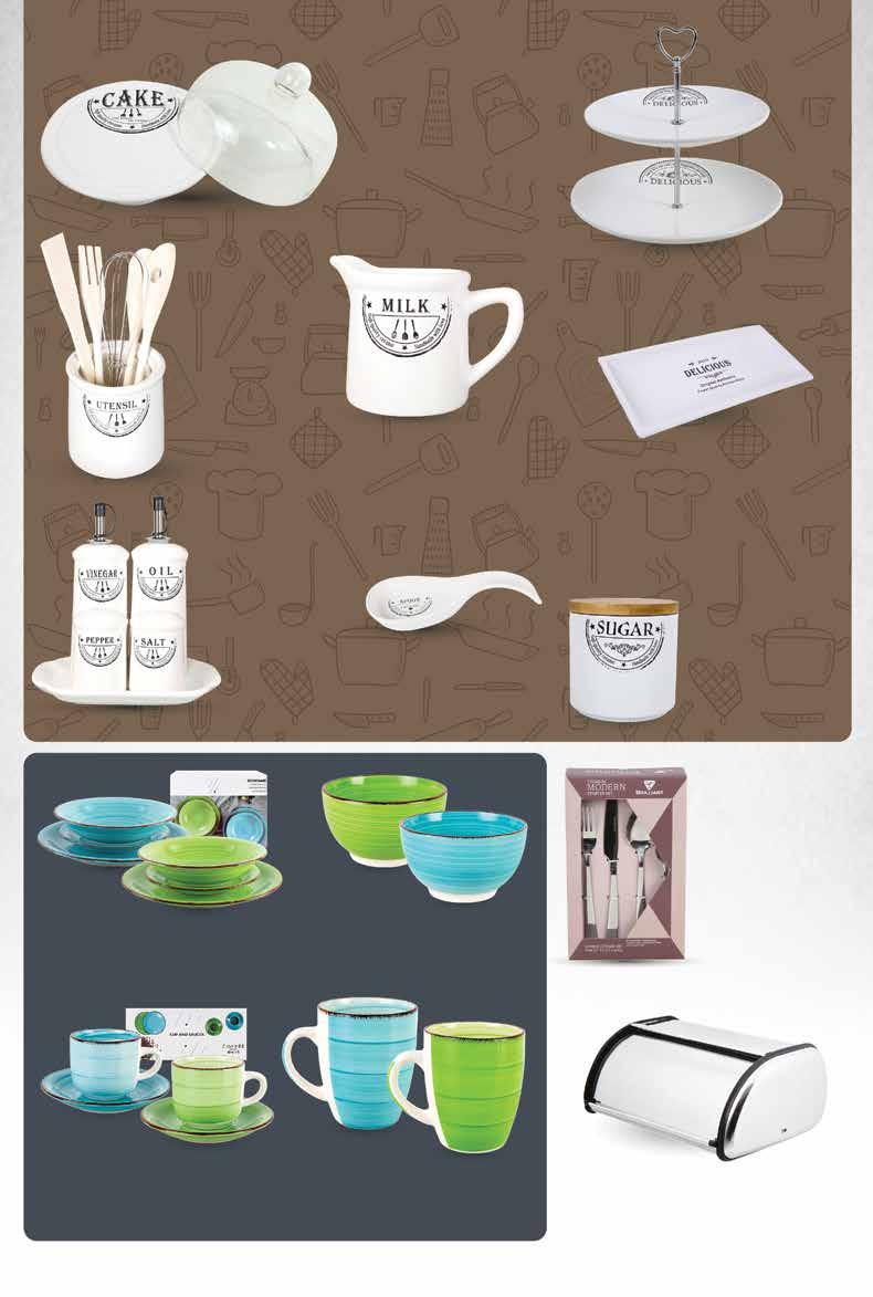 Set tanjura • zeleni ili plavi set Kutija za kruh Set šalica • zeleni ili plavi set Šalica • zelena ili plava • zapremnine 340 ml Zdjelica • zelena ili plava Ukrasni tanjur • pravokutni • materijal: keramika • dimenzije 30,5 x 15,5 x 2 cm Set za ulje, ocat, sol i papar na podlošku • materijal: keramika, plastika i nehrđajući čelik Posuda za mlijeko • materijal: keramika Set pribora za jelo • 24 komada • za 6 osoba • sastoji se od: 6 žlica, 6 vilica, 6 noževa i 6 desertnih žličica Posuda • sa 4 kuhinjska pomagala • materijal: keramika, drvo 13,5×8,5×10 cm 24,5×24,5×2,5 cm 35×23,5×14 cm 23×8,5×4 cm 25×25×8,5 cm 5 89 € 44.38 kn 2 09 € 15.75 kn 2 09 € 15.75 kn 7 89 € 59.45 kn 1 35 € 10.17 kn 1 75 € 13.19 kn 4 19 € 31.57 kn 7 89 € 59.45 kn 8 99 € 67.74 kn • dimenzije 36x17,5x2,5 cm 5.29 € 39.86 kn 2099 € 158.15 kn 3350 € 252.41 kn 1250 € 94.18 kn 1499 € 112.94 kn inox Ø 14 cm 24 - dijelni set 12 - dijelni set 18 - dijelni set Zvono za tortu • materijal: keramika, staklo A B Etažer • 2 nivoa • materijal: keramika A Držač za kuhače • materija: keramika A A A A B C Posude za šećer • s bambus poklopcem 9,5×9,5×9 cm 3 79 € 28.56 kn A A A B C A B C A B C A B C A B C A B C