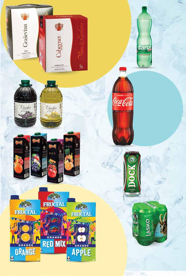 ERDUTSKI VINOGRADI Graševina ili Cabernet Sauvignon bijelo ili crno kvalitetno vino 5 l COCA-COLA Gazirani napitak 2 l LAŠKO ZLATOROG Svijetlo pivo udio alkohola 4,9% 4x 0,5 l DOCK Svijetlo pivo udio alkohola 4% 0,5 l DANA Prirodna mineralna voda gazirana 1,5 l VINKO Bijelo ili crno vino 3 l FRUCTAL Sok naranča, jabuka ili šumsko voće 2 l VINDI Voćni sok ACE, BCE, crni ribizjabuka ili narančanektarina 1 l Prilika vikenda!Super prilika! Prilika tjedna! 2 69 € 20.27 kn 1 l = 0,90 € / 6,76 kn -18% 3.32 € / 25.01 kn Prilika tjedna! 9 99 € 75.27 kn 1 l = 2,00 € / 15,05 kn -28% 13.99 € / 105.41 kn Prilika vikenda!Super prilika! Prilika tjedna! 1 49 € 11.23 kn 1 l = 0,75 € / 5,62 kn -21% 1.89 € / 14.24 kn Prilika vikenda!Super prilika! Prilika tjedna! 4 24 € 31.95 kn 1 l = 2,12 € / 15,98 kn -13% 4.91 € / 36.99 kn Prilika vikenda!Super prilika! Prilika tjedna! 0 59 € 4.45 kn 1 l = 1,18 € / 8,90 kn -19% 0.73 € / 5.50 kn Prilika vikenda!Super prilika! Prilika tjedna! 0 93 € 7.01 kn -30% 1.33 € / 10.02 kn Prilika vikenda!Super prilika! Prilika tjedna! 0 49 € 3.69 kn 1 l = 0,33 € / 2,46 kn -32% 0.73 € / 5.50 kn 1 85 € 13.94 kn 1 l = 0,93 € / 6,97 kn Štedi više! Plati manje! 50% sniženoSuper svježa prilika!Već od HIT cijena! Gastro preporuka: Uz mesne plate 4 x 0,5 l 2 l 5 l 3 l 2 l Fotografije