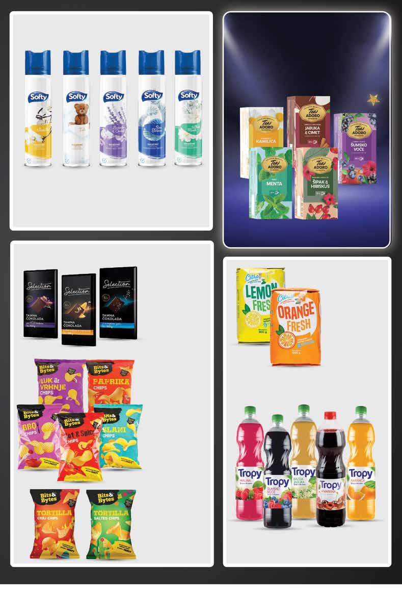 SELECTION Čokolada tamna razne vrste Prilika tjedna!-00% 0.00 € / 00.00 kn Prilika vikenda!Super prilika! 1 14 € 8.59 kn 1 kg = 11,40 € / 85,90 kn 100 g BITS & BYTES Tortilla chips slani ili chili BITS & BYTES Čips razne vrste -00% 0.00 € / 00.00 kn Prilika vikenda!Super prilika! Prilika tjedna! 0 77 € 5.80 kn 1 kg = 5,13 € / 38,67 kn 150 g Prilika tjedna!-00% 0.00 € / 00.00 kn Prilika vikenda!Super prilika! 0 99 € 7.46 kn 1 kg = 6,60 € / 49,73 kn 150 g TEA ADORO Čaj odabrane vrste 20 - 40 g -30% Naša vizija, naš odabir, naš brend Prilika vikenda!Super prilika! Prilika tjedna! 1 05 € 7.91 kn 1 l = 3,50 € / 26,37 kn -20% 1.32 € / 9.95 kn SOFTY Osvježivač prostora razne vrste 300 ml Novo u ponudi ! Novo u ponudi ! TROPY Sirup razne vrste 1 l Prilika vikenda!Super prilika! Prilika tjedna! 1 45 € 10.93 kn -15% 1.72 € / 12.96 kn CITRA Vitaminski napitak naranča ili limun 2 90 € 21.85 kn 1 kg 1 kg Fotografije