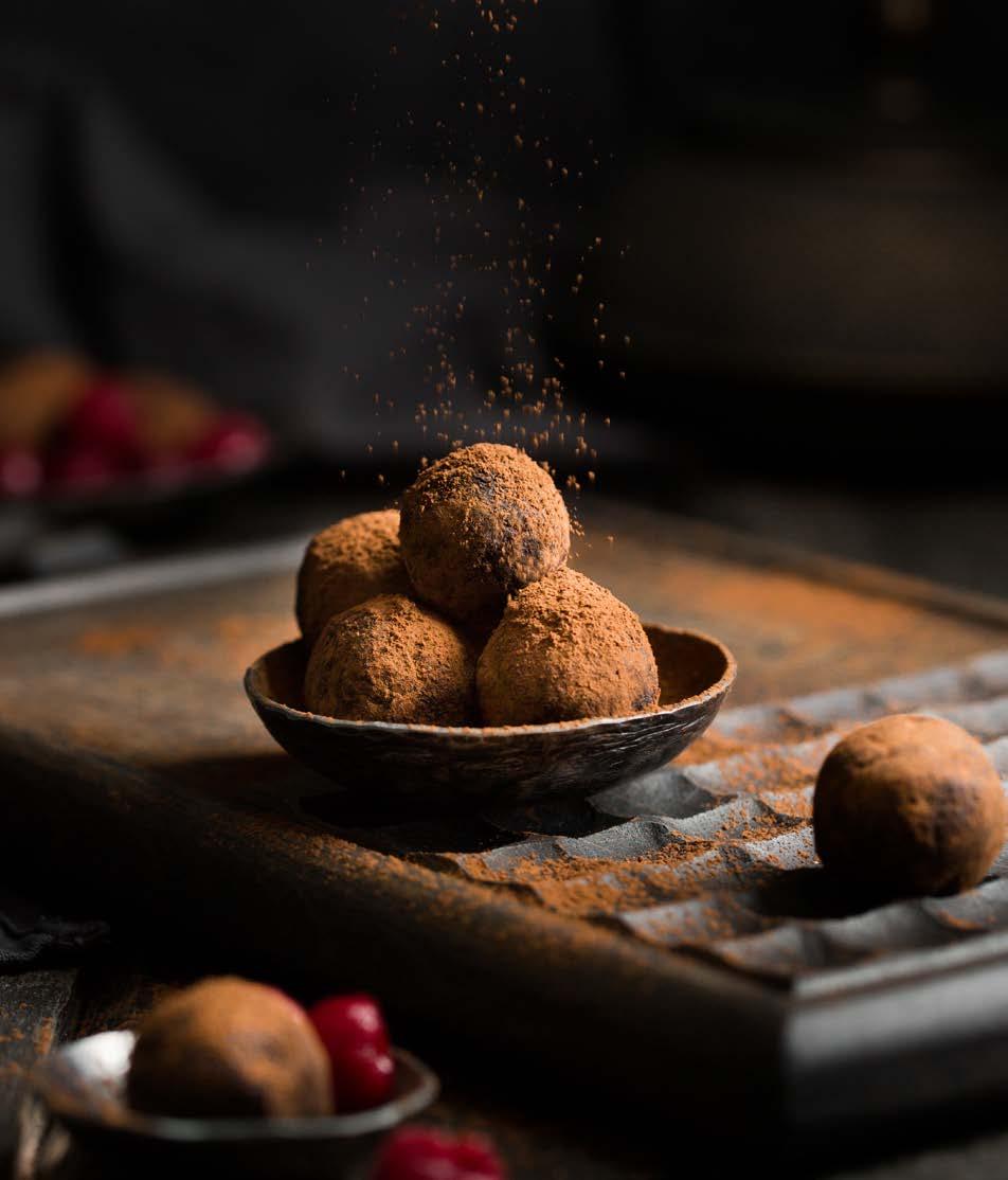 Veliki pleh obloži papirom za pečenje. Izvadi smjesu iz hladnjaka rukama oblikuj kuglice željene veličine. Svaku kuglicu možeš umočiti u gorki kakao ili u otopljenu čokoladu pa vratiti u hladnjak na 20-ak minuta.