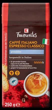 Mljevena kava VODIČ KROZ VRSTE KAVE ESPRESSO espresso 30 ml RISTRETTO espresso 20 ml kratki espresso CAPPUCCINO espresso 60 ml zagrijano mlijeko 60 ml krema od mlijeka 60 ml FLAT WHITE espresso 60 ml, zagrijano mlijeko 120 ml LATTE espresso 60 ml zagrijano mlijeko 300 ml krema od mlijeka 2 ml LUNGO espresso 90 ml produženi espresso MACCHIATO espresso 60 ml žlica kreme od mlijeka DUPLI ESPRESSO espresso 60 ml FRANCK Coffee&go Mljevena kava Original, Intense ili Sensual 9 g 0.33€ 2.49kn samo UŠTEDI -20% uz Kaufland Card BARCAFFE Kava mljevena Single Ethiopia 200 g (=1 kg 182,45 kn/ 24,22€) 4.84€ 36.49kn samo UŠTEDI -20% uz Kaufland Card FRANCK Mljevena kava bez kofeina, vakuumirana 250 g (=1 kg 151,96 kn/ 20,17 €) 5.04€ 37.99kn samo UŠTEDI -20% uz Kaufland Card 6.50€ 48.99kn samo UŠTEDI -20% uz Kaufland Card FRANCK Mljevena kava Guatemala 250 g (=1 kg 195,96 kn/ 26,01 €) 3.98€ 29.99kn samo UŠTEDI -20% uz Kaufland Card Kava Italiano Espresso Classico 250 g (=1 kg 119,96 kn/ 15,92 €) OD PONEDJELJKA 26.9. *Sve navedene cijene izražene su u kunama s PDV-om preračunate po fiksnom tečaju konverzije 7.53450 kuna za jedan euro. Ne odgovaramo za tiskarske pogreške.Fotografije proizvoda ne moraju 100% odgovarati dotičnim proizvodima.2 3