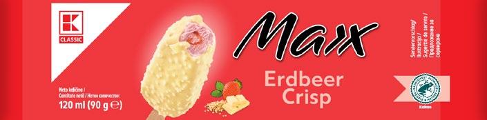 MAX Hrskav izvana, kremast iznutra! K-Classic Max sladoled na štapiću dolazi u voćnoj i čokoladnoj varijanti nježne teksture i raskošnog okusa.