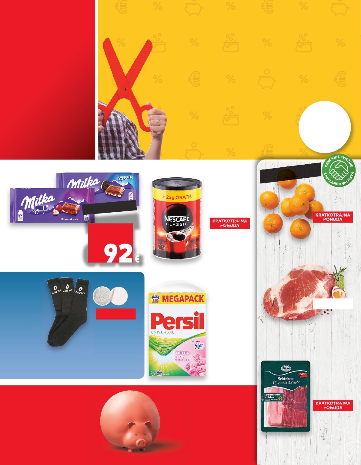 U katalogu su cijene u eurima izražene sukladno fiksnom tečaju konverzije 7.53450 kuna za jedan euro POVOLJNI U EURU! u kuni, povoljni ZAOKRUŽILI SMO CIJENE VIŠE OD 15.000 PROIZVODA NA NIŽE! KUPUJ POVOLJNO KAO DO SAD POVOLJNI U EURU! u kuni, povoljni S Z C E T K E VIŠE NA STR. 28-45 MEGA REZVIŠEOD 210 NEPREHRAMBENIH PROIZVODA Kaufland ti donosi 836 PROIZVODA PO SUPER CIJENAMA o f 4 0 j e ro PERSIL Deterdžent za rublje silan svježina *za 120 pranja 7,8 kg (=1 kg 2,55€) KRATKOTRAJNA PONUDA samo SUPERCIJENA KRATK AJNA SUPER CIJENAONUDAUPERPONUD ONUD TKOTRAJNA 0% UPERCIJENA TKOTR 19.89€ 149.86kn Sportske čarape 65% pamuk, 34% poliester, 1% elastan vel. 39/42-43/46 pakiranje (=1 kg 19,21 kn) REDOVITA KONTROLASOČNOSTI čarape 65% 34% 1% Svinjska lopatica bez kostiju 1 kg MILKA Čokolada odabrane vrste 80-100 g KRATKOTRAJNA PONUDA samo SUPERCIJENA KRATK AJNA SUPER CIJENAONUDAUPERPONUD ONUD TKOTRAJNA 1% UPERCIJENA TKOTR 3.31€ NESCAFE Instant kava classic 275 g (=1 kg 26,52€) SUPER CIJENA-28% 6.63€ 9.29€ Klementine 1 kg WEIN Švarcvaldska šunka narezak trajni proizvod 500 g (=1 kg 11,40€) samo SUPER CIJENA SUPERCIJENA UPER-0% 0% 0.99€ SUPER CIJENA-41% 5.70€ 9.69€ 24.94kn 49.95kn 70.-kn 42.95kn 73.01kn 7.46kn KRATKOTRAJNA PONUDA SUPERCIJENA KRATK AJNA SUPER CIJENAONUDAUPERPONUD ONUD TKOTRAJNA 0% UPERCIJENA TKOTR samo 3.95€ 29.76kn 2.38€ -39% 39 17.93 kn (= 1 kg od 9,20 do 11,50€) VIŠEOD 16 VRSTA ZA 120 PRANJA IZ RASHLADNE VITRINE S USLUŽNOG PULTA 9.72 kn 6.93KN kn 0. -28% 1.29€ 3 para (=1 kg 85,89 kn) (= 1 kg od 69,32 do 86,65 kn) (=1 kg 199,81 kn) OD SRIJEDE, 11.1. DO UTORKA, 17.1.2022. OD 11.1. DO UTORKA, 17.1.2023. S1-HR-KW02-LFT-TS-1030-11