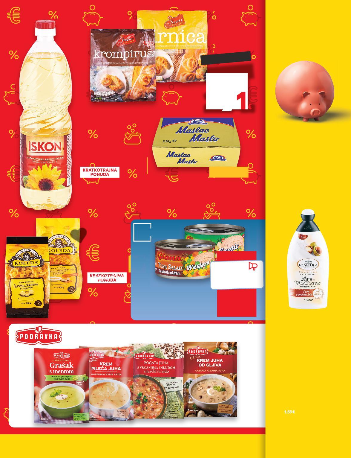 (=1 kg A 53,80/ KC 48,52 kn) GIANA Salata od tune razne vrste 185 g (=1 kg A 7,14/ KC 6,44€) samo SUPER CIJENA SUPERCIJENA UPER-0%UPER0% 1.32€ 9.95kn 1.19€ 8 97 kn KOLEDA Tjestenina s jajima razne vrste 400 g (=1 kg 3,63€) SUPER CIJENA-27% 1.45€ 1.99€ 10.93kn 14.99kn (=1 kg 27,35 kn) D O -35% KREM JUHE 15.000 PROIZVODA NA NIŽE! 7 POVOLJNI U EURU! u kuni, povoljni ZAOKRUŽILI SMO CIJENE VIŠE OD 15.000 PROIZVODA NA NIŽE! BIRAJ POVOLJNO KAO DO SAD 21.99 kn 2.92€ 21.77 kn 2.89€ STARA CIJENA PRIJE 1.1.2023. SADAŠNJA CIJENA L´ANGELICA Gel za tuširanje odabrane vrste 500 ml (=1 kg 3,24€) JAMI Pita sa sirom ili krumpirom 10 x 90 g ISKON Suncokretovo ulje rafinirano 1 L samo SUPER CIJENA SUPERCIJENA UPER-4% 4% 1.67€ 12.58kn 39.86kn 21.93KN kn 2.9 -44% 5.29€ KAUFLAND NISKA CIJENA (=1 kg 24,41 kn) MEGAMILK Maslac 82% m.m. 250 g (=1 kg 7,96€) KRATKOTRAJNA PONUDA samo SUPERCIJENA KRATK AJNA SUPER CIJENAONUDAUPERPONUD ONUD TKOTRAJNA 0% UPERCIJENA TKOTR 1.99€ 14.99kn IZ RASHLADNE VITRINE (=1 kg 59,97 kn) KAUFLAND NISKA CIJENA S5-HR-KW02-LFT-AKTF_1_D-1030-11 5