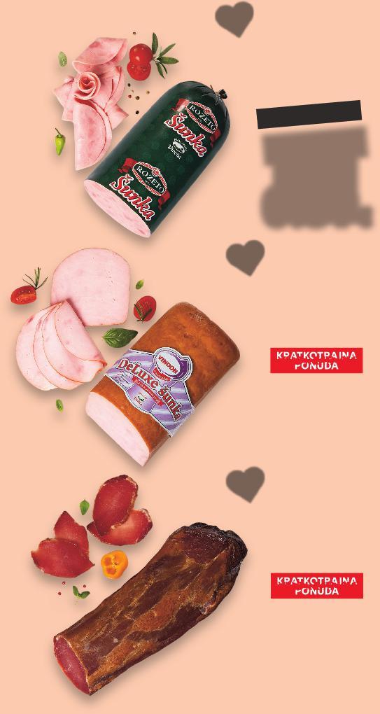 KRATKOTRAJNA PONUDA SUPERCIJENA ONUDA 6.93kn 4.45kn 0.59€ -35% 0.92€ USLUŽNI PULT OD SRIJEDE, 11.1. KAUFLAND KVALITETA OBEĆANJE SVJEŽINE ANDRO Dalmatinska pečenica trajni proizvod 100 g PRESIDENT Cheddar crveni, tvrdi, punomasni sir 48% m.m. 100 g Akadia Zamjena za slani sir u salamuri 100 g (= 1 kg 14,50 €) (=1 kg 11,20 €) (=1 kg 3.- €) m.m. 100 g ( g 11,20 €) SUPER CIJENA-43% 1.45€ 2.58€ SUPER CIJENA-22% 1.12€ 1.45€ KRATKOTRAJNA PONUDA SUPERCIJENA KRATK AJNA SUPER CIJENAONUDAUPERPONUD ONUDSUPE I E TKOTRAJNA 0% UPERCIJENA TKOTR samo 0.30€ 19.44kn 9.42kn 10.93kn 7.46kn 10.93kn 8.44kn 2.26kn (= 1 kg 9,90 €) SUPER CIJENA-20% 0.99€ 1.25€ VINDON Šunka Deluxe od filea purećih prsa polutrajni proizvod 100 g (= 1 kg 5,90 €) ROZETO Šunka u ovitku polutrajni proizvod 100 g ZAOKRUŽILI SMO REDOVNE CIJENE VIŠE OD (= 1 kg 109,25 kn) (= 1 kg 74,59 kn) (=1 kg 84,39 kn) (= 1 kg 44,45 kn) Dimljeni hamburger polutrajni proizvod 100 g (=1 kg 7.- €) SUPER CIJENA-33% 0.70€ 1.05€ 7.91kn 5.27kn (=1 kg 52,74 kn) 12.88kn 9.95kn (= 1 kg 13,20 €) SUPER CIJENA-22% 1.32€ 1.71€ PRESIDENT Brie meki, ekstramasni sir s bijelom plemenitom plijesni min. 60% m.m. 100 g (= 1 kg 99,46 kn) (=1 kg 22,60 kn) ✓ carsko meso svinja 100% hrvatskog podrijetla S14-HR-KW02-LFT-WUKAP_1_L-1030-11 14