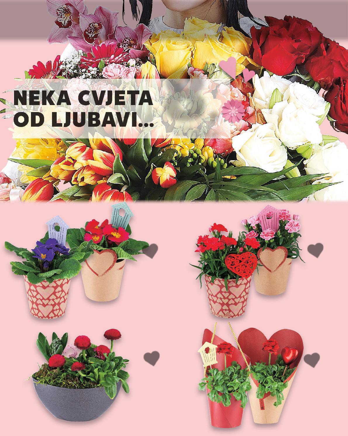Cvjetni vrtić „Love“ komad Kalanhoja i brdska palma u drvenom srce dekoru komad Cvijeće u keramici sa dekoracijom komad Orhideja u kutiji komad samo 3.99€ samo 3.-€ samo 11.99€ 30.06kn 64.72kn 90.34kn 22.60kn samo 8.59€ Buket ruže i eukaliptus 50 cm pakiranje od 9 komada zalijevati dva puta tjedno Buket ruža 50 cm komad pakiranje od 3 kom. Naš izbor cvijeća zalijevati dva puta tjedno zalijevati jednom tjedno OD PONEDJELJKA, 6.3. DO SRIJEDE, 8.3. DO SRIJEDE, 8.3. NAJVEĆI IZBOR SVJEŽEG BILJA! ✓Šarmantne kalanhoje, mirisne ruže, elegantne
