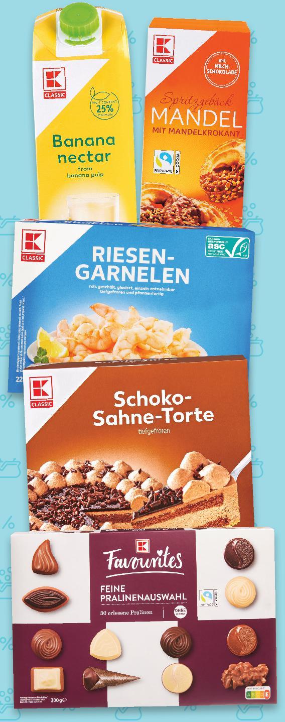 -7.97kn -1.06€ K-FAVOURITES Praline smrznuti 300 g ušteda -20.42kn -2.71€ K-CLASSIC Čokoladna torta sa šlagom 1200 g ušteda -3.60kn -0.48€ K-CLASSIC Čajno pecivo s bademom 300 g ušteda -8.21kn -1.09€ K-CLASSIC Repovi kozica smrznuti 225 g ušteda S58-HR-KW09-LFT-PR_RS-1030-11 58