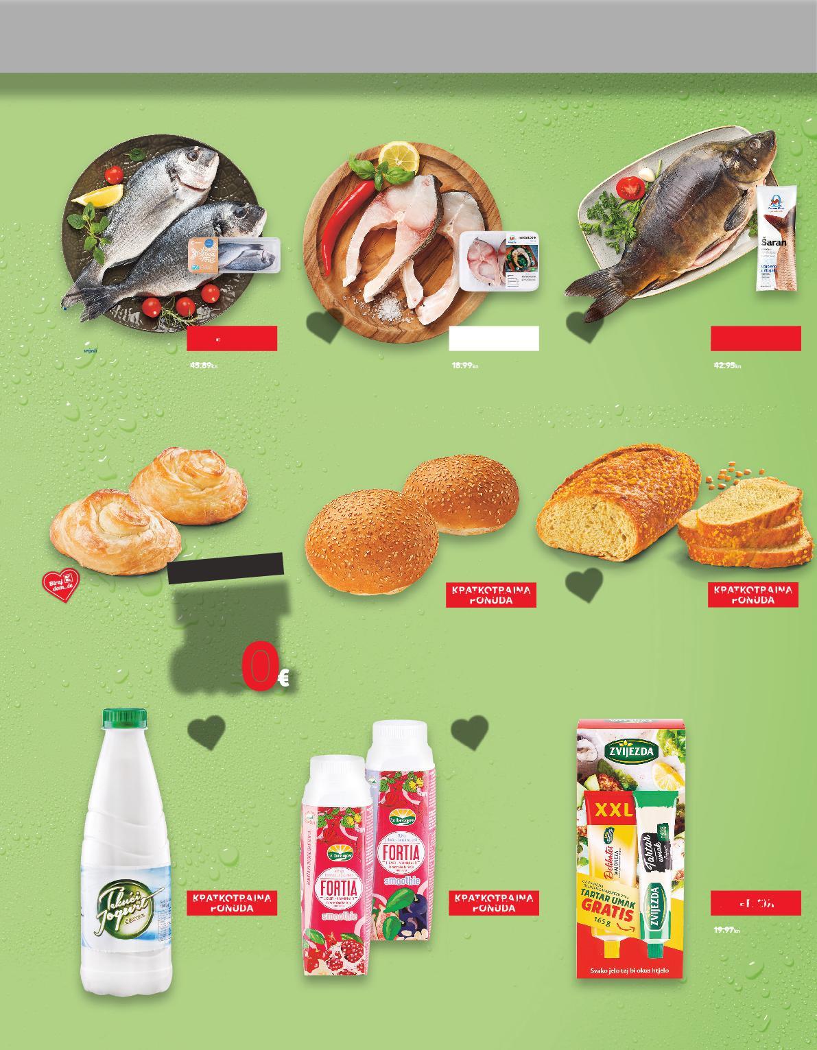 ✓ očišćeno SUPERCIJENA -0% 0% Zvrk sa sirom 150 g Hamby pecivo sa sezamom 70 g Kruh kukuruzni miješani beskvasni 400 g (=1 kg 4.-€) (= 1 kg 3,72 € ) (=1 kg 2,65€) SUPER CIJENA-29% 0.26€ 0.37€ SUPER CIJENA-28% 1.06€ 1.49€ 2.79kn 1.96kn 11.23kn 7.99kn (=1 kg 30,14 kn) (= 1 kg 28,03kn ) (=1 kg 19,97 kn) EURO-MILK Tekući jogurt 2,8% m.m. 1000 g FORTIA Smoothie razne vrste 2,3% m.m. 330 g ZVIJEZDA Majoneza delikates gratis Tartar 165 g 255 g (=1 kg 3,13€) (= 1 kg 10,40 €) SUPER CIJENA-16% 1.32€ 1.59€ SUPER CIJENA-20% 1.03€ 1.29€ KRATKOTRAJNA PONUDA samo 2.65€ 11.98kn 9.95kn 9.72kn 7.76kn 19.97kn (=1 kg 23,58 kn) (= 1 kg 78,36 kn) IZ NAŠE PEKARE IZ NAŠE PEKARE IZ NAŠE PEKARE 7.91kn 4.52kn pecivo 70 g (= 1 3,72 € ) (= 1 kg 28,03kn ) 7.91 0.60 -42% 1.05€ IZ RASHLADNE VITRINE IZ RASHLADNE VITRINE IZ RASHLADNE VITRINE CROMARIS Orada 600 g Tolstolobik odrezak svježi 450 g PP ORAHOVICA Šaran svježe cca. 1,5 - 2 kg 1 kg (=1 kg 10,15€) (=1 kg 5,60€) samo SUPER CIJENA SUPERCIJENA -0%UPER0% 6.09€ KRATKOTRAJNA PONUDA samo SUPERCIJENA KRATK AJNA SUPER CIJENAONUDAUPERPONUD ONUD TKOTRAJNA 0% UPERCIJENA TKOTR CI ENA 2.52€ KRATKOTRAJNA PONUDA samo SUPERCIJENA SUPER CIJENAONUDA 0% 5.70€ 45.89kn 18.99kn 42.95kn (=1 kg 76,48 kn) (=1 kg 42,19 kn) - KAUFLAND NISKA CIJENA ✓ očišćeno IZ RASHLADNE VITRINE IZ RASHLADNE VITRINE IZ RASHLADNE VITRINE