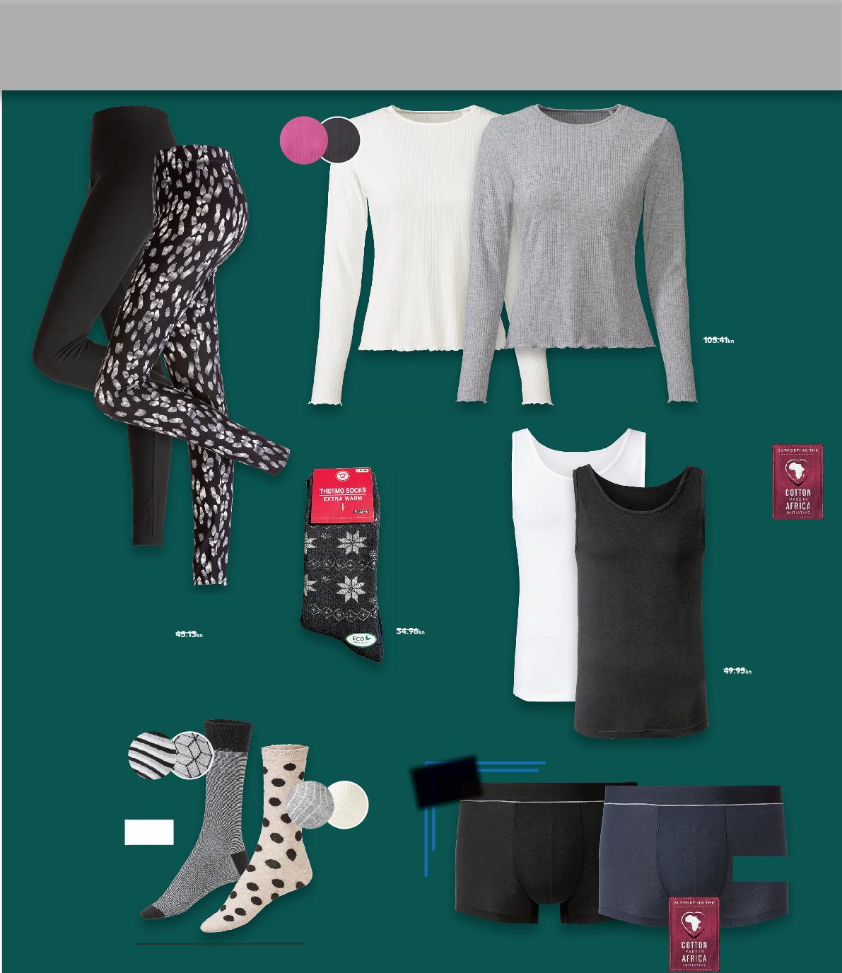 Termo čarape 60% pamuk, 37% poliesterska vlakna, 3% elastan vel. 35/38-43/46 pakiranje KRATKOTRAJNA PONUDA samo SUPERCIJENA KRATK AJNA SUPER CIJENAONUDAUPERPONUD ONUD TKOTRAJNA 0% UPERCIJENA TKOTR 4.64€ 34.96kn 105.41kn KRATKOTRAJNA PONUDA samo SUPERCIJENA KRATK AJNA SUPER CIJENAONUDAUPERPONUD ONUD TKOTRAJNA 0% UPERCIJENA TKOTR 13.99€ 45.13 kn VEĆ OD 5.99€ vel. za žene 35/38-39/42 5.99€* vel. za muškarce 39/42-43/46 6.99€* 45.13kn * 52.67kn * Muške bokserice 75% pamuk, 20% liocel, 5% elastan vel. M-XL pakiranje KRATKOTRAJNA PONUDA samo SUPERCIJENA KRATK AJNA SUPER CIJENAONUDAUPERPONUD ONUD TKOTRAJNA 0% UPERCIJENA TKOTR 9.28€ 69.92kn 7.96€ 59.97kn -14% Ženska majica 62% poliesterska vlakna, 33% viskoza 5% elastan vel. 36/38-44/46 pakiranje 2 kom 2 kom 45.13kn KRATKOTRAJNA PONUDA samo SUPERCIJENA KRATK AJNA SUPER CIJENAONUDAUPERPONUD ONUD S CI EN TKOTRAJNA 0% UPERCIJENA TKOTR 5.99€ Ženske tajice 90% poliesterska vlakna, 10% elastan vel. 36/38-44/46 komad Čarape od pamuka, poliamida i elastana pakiranje KRATKOTRAJNA PONUDA samo SUPERCIJENA KRATK AJNA SUPER CIJENAONUDAUPERPONUD ONUD TKOTRAJNA 0% UPERCIJENA TKOTR 6.63€ 49.95kn Muška potkošulja 75% pamuk, 20% liocel, 5% elastan vel. M-XL komad Ovaj proizvod sadrži 100% GRS certificirani reciklirani poliester s certifikatom CU 1000035. od za 5 pari 3 para S41-HR-KW09-LFT-NF_5_D-1030-11 41
