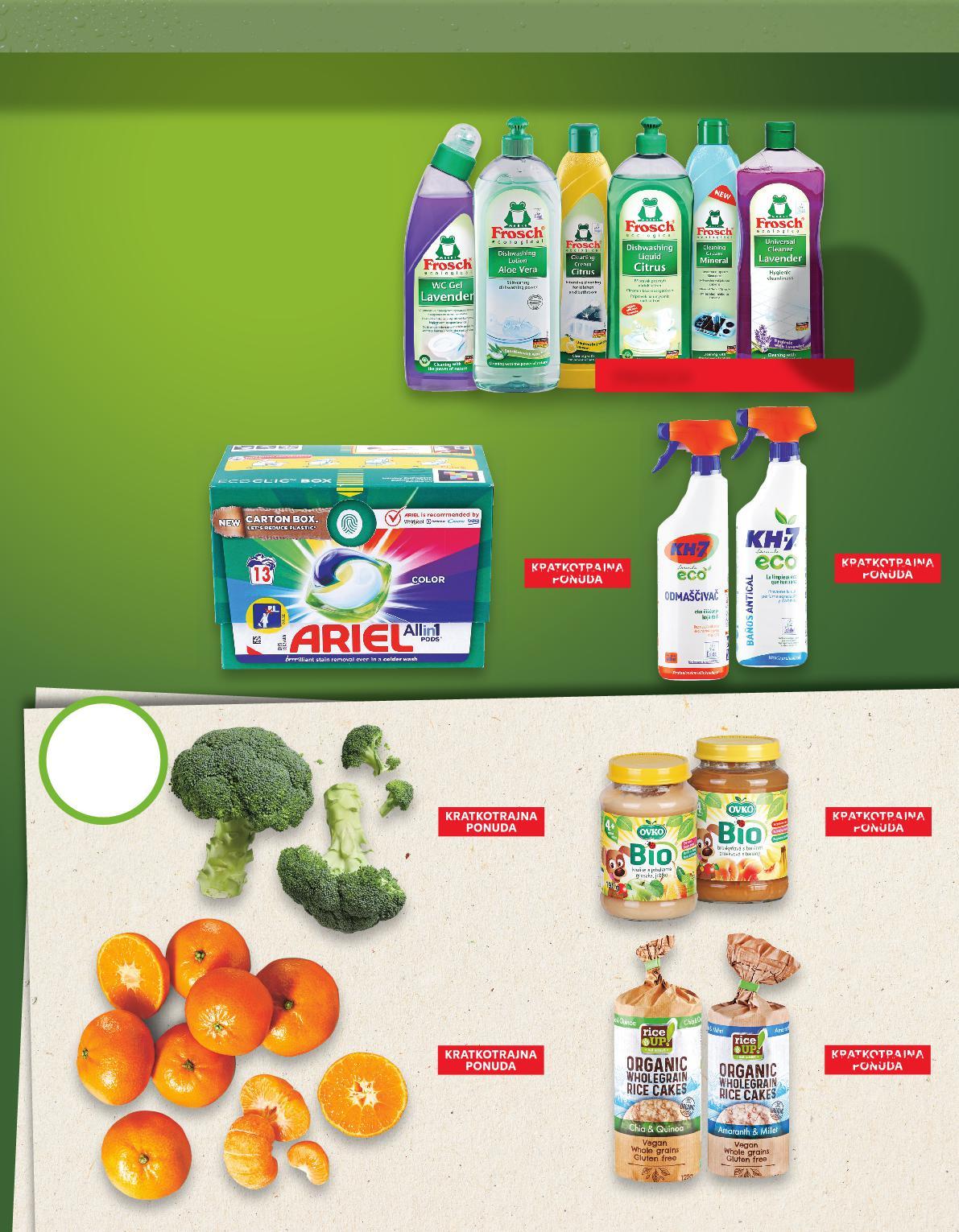 -30% FROSCH PROIZVODI ZA ČIŠĆENJE 11 PROIZVODA STROŽE KONTROLE BIO PROIZVODA U ASORTIMANU I 100 X VIŠE... IZBOR RICE UP Bio rižini krekeri Chia&Quinoa ili Millet Amarant 120 g OVKO Bio dječja kašica odabrane vrste 190g (=1 kg 5,50€) (=1 kg 3,11€) SUPER CIJENA-28% 0.66€ 0.92€ SUPER CIJENA-26% 0.59€ 0.80€ Mandarina 750 g SUPER CIJENA Brokula 350 g (=1 kg 2,39€) (=1 kg 3,69€) 1.79€ SUPER CIJENA 1.29€ 4.97kn 6.93kn 62.91kn 37.60kn 21.02kn 32.78kn 4.45kn 6.03kn 13.49kn (=komad 0,39€) ARIEL Kapsule za pranje rublja color all in 1 13 kom 9.72kn SUPER CIJENA-40% 4.99€ 8.35€ (=1 l 4,30€) KH-7 Sredstvo za odmaščivanje ili kupaonicu eco formula 650 ml SUPER CIJENA-35% 2.79€ 4.35€ ✓100% reciklabilni karton ✓ušteda do 60% energije uz pranje na nižim temperaturama VIŠE OD 300 samo samo