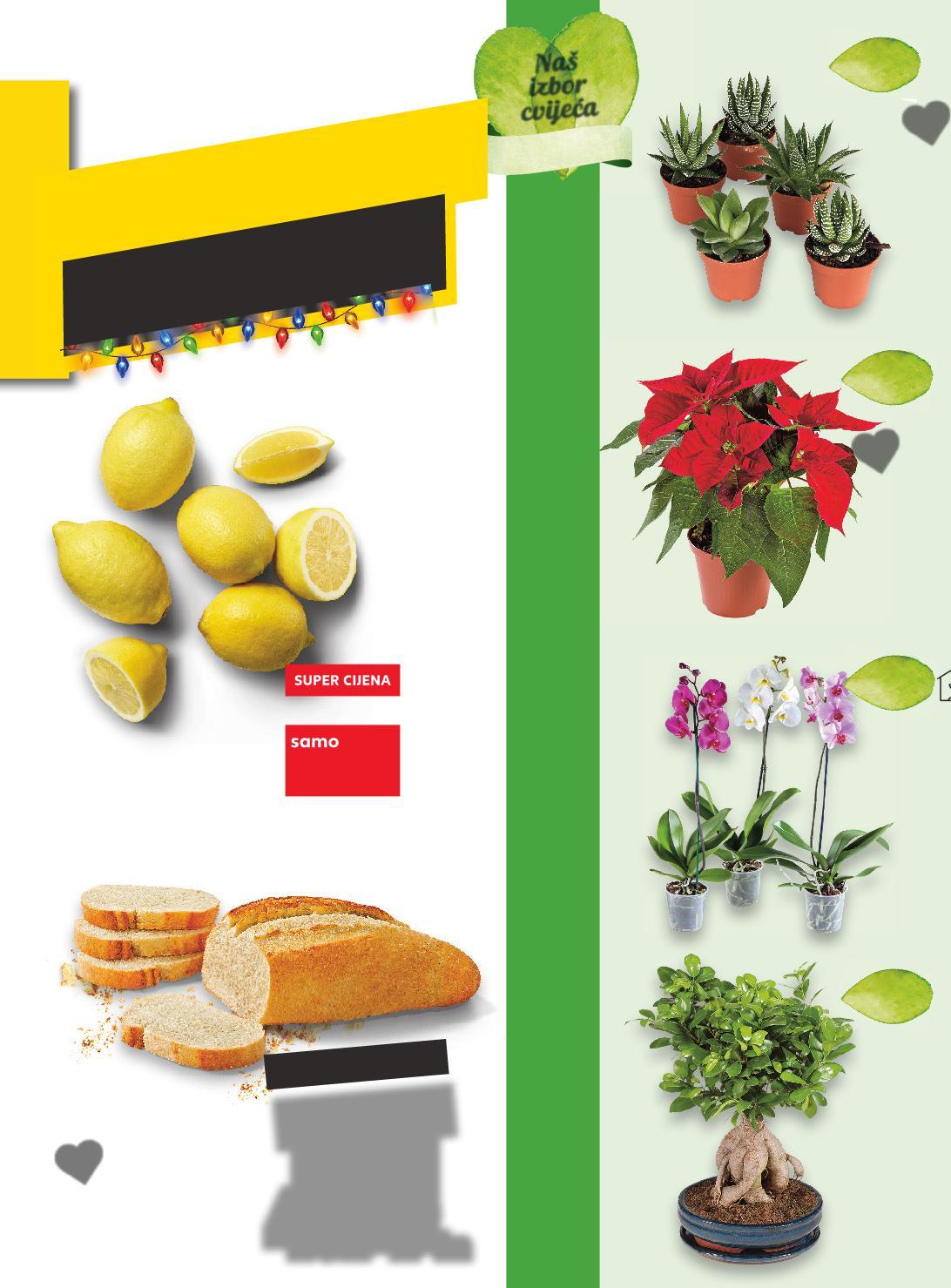 OD PONEDJELJKA 12.12. DO NEDJELJE 18.12. Naš izbor cvijeća zalijevati povremeno zalijevati jednom tjedno Mini sukulenti raznih vrsta komad samo 69.99kn Ficus Ginseng zelena sobna biljka u dekorativnoj tegli komad samo 12.99kn Krumpirov kruh 400 g (=1 kg 12,48 kn) 1.72€ 1.33€ -23% 9.99kn 12.99kn Limun u mrežici od 1kg komad (=1 kg 1,66€) 9.29€ 1.72€ zalijevati jednom tjedno samo 49.99kn Orhideja Phalaenopsis različitih boja komad 6.63€ IZ NAŠE PEKARE DOMAĆI,IZ DOLINE NERETVE 1.17€ 0.66€ 4.99kn -43% 8.79kn zalijevati povremeno samo 24.99kn Božićna zvijezda promjer lonca 11 cm komad 3.32€ S41-HR-KW49-LFT-AKTF_8_D-1030-04 41