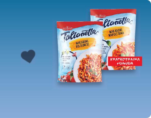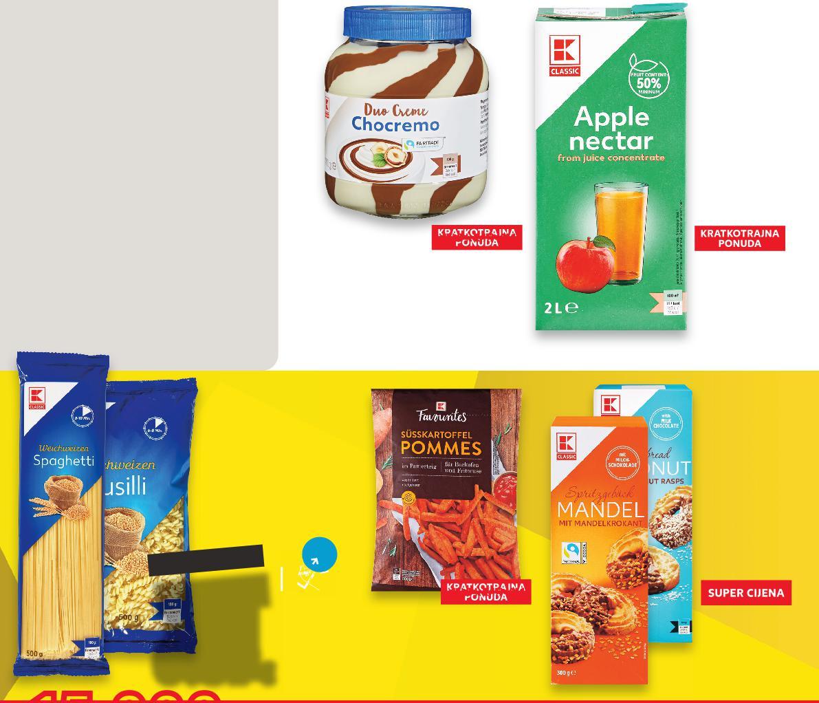 Potraži dodatnu ponudu naših marki u online katalogu! Uz Kaufland Card ostvari 20%* POPUSTA na prikazane redovne cijene na redovne * Popust se odnosi samo na str. 53-60 u online katalogu 15.000 PROIZVODA NA NIŽE! Talijanskog! Zato kod nas potraži više od 40 vrsta K-Classic tjestenina i napravi najbolju „pastu“ s crvenim umakom! Ovo je naš prijedlog za brz i ukusan recept KAKVOG JE OKUSA POČETAK TJEDNA? KAUFLAND NISKA CIJENA -21% 12.73kn 9.79kn Dvobojni namaz 400 g (=1 kg 4,50€) Pommes frites od batata 500 g (=1 kg 3,18€) Voćni nektar jabuka udio voća 50% 2 l SUPER CIJENA (=1 l 0,53€) -27% 1.80€ 2.49€ TJESTENINA razne vrste 500 g Čajno pecivo s bademom ili kokosom 300 g samo SUPER CIJENA SUPERCIJENA UPER-18% 18% UPERCIJENA 1.06€ SUPER CIJENA-33% 1.59€ 2.39€ (=1 kg 1,18 €) (=1 kg 4,40 €) 1.32€ 1.69€ 7.99kn 13.56kn 18.76kn 9.95kn 11.98kn 18.01kn 7.46kn 4.45kn kn 0.59€ -40% 0.99€ (=1 kg 8,89 kn) (=1 kg 33,91 kn) (=1 l 3,99 kn) (=1 kg 23,96 kn) (=1 kg 33,15 kn) S51-HR-KW02-LFT-AKTF_7_D-1030-11 51