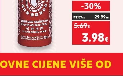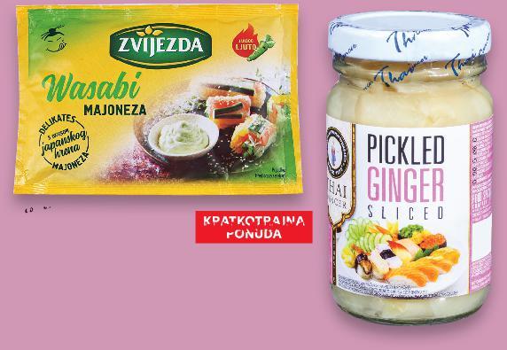 TJEDAN AZIJE OD SRIJEDE, 11.1. IZ RASHLADNE VITRINE ZVIJEZDA Majoneza Wasabi okus japanskog hrena jako ljuto 85 g (=1 kg 7,77€) VIJEZD ajon SUPER CIJENA-29% 0.66€ 0.93€ 4.97kn 7.01kn (=1 kg 58,54 kn) SHAN SHI Umak za wok Japan Teriyaki 120g KIKKOMAN Umaci razne vrste 250 ml Thai umak 320 ml THAI DANCER Đumbir u octu 100 g FL.GOOSE SRIRACHA ljuti chilli sos 455 ml (=1 kg 13,25€) (=1 l 15,92€) (=1 l 7,04€) (= 1 kg 11,90 €) (=1 l 8,75€) SUPER CIJENA-40% 1.59€ 2.65€ SUPER CIJENA-29% 1.19€ 1.69€ SUPER CIJENA-30% 3.98€ 5.69€ SUPER CIJENA-31% 2.25€ 3.29€ 29.01kn 19.97kn 19.97kn 11.98kn 24.79kn 16.95kn 12.73kn 8.97kn 42.87kn 29.99kn (=1 kg 5,30€) SUPER CIJENA-31% 2.65€ 3.85€ Rižin papir okrugli 22 cm 500 g 41.82 kn 29.99KN kn 3.9 -28% 5.55€ KUŠAJ RECEPT CHEFA PERE ILI NAPRAVI SVOJE JELO UZ OMILJENI UMAK! ZAOKRUŽILI SMO REDOVNE CIJENE VIŠE OD (=1 kg 39,93 kn) (=1 kg 99,83 kn) (=1 l 119,95 kn) (=1 l 53,04 kn) (= 1 kg 89,66 kn) (=1 l 65,93 kn) S18-HR-KW02-LFT-AKTF_4_L-1030-11 18