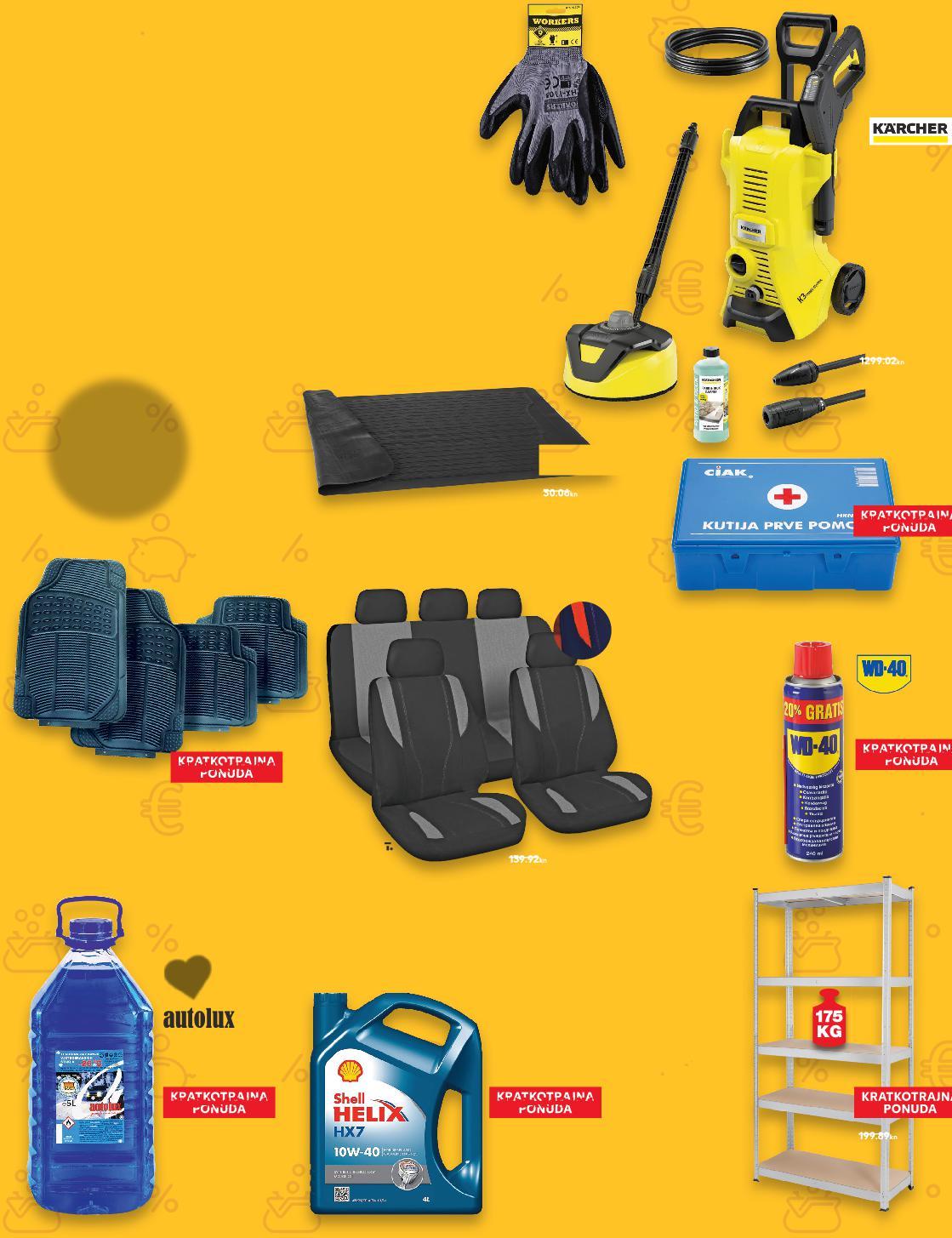 KRATKOTRAJNA KRATKOTRAJNA SUPERCIJENA KRATKOTRAJNA SUPERCIJENA Regal od pocinčanog metala s 5 polica dimenzije cca. 40x90x180 cm ukupna nosivost cca. 875 kg komad od metala s 5 egal pocinano ala polic pocinčan anpocinč č ča samo SUPER CIJENA SUPERCIJENA UPER-0%UPER0% 26.53€ 199.89kn Kutija prve pomoći pakiranje SUPER CIJENA-38% 7.30€ 11.89€ 55.-kn 89.59kn Visokotlačni perač K3 PCH T5 maks. pritisak 120 bar maks. protok 380 l/h snaga 1600 W pakiranje KRATKOTRAJNA PONUDA samo 189.-€ 1.424,02kn KRATKOTRAJNA PONUDA samo SUPERCIJENA KRATK AJNA SUPER CIJENAONUDAUPERPONUD ONUD TKOTRAJNA 0% UPERCIJENA TKOTR 3.99€ 30.06kn Podloga za prtljažnik automobila od termoplastične gume individualno skrativa dimenzije cca. 120x80 cm komad ✓ štiti od prljavštine i klizanja Radne rukavice veličina 9 ili 10 par ✓ nitrilni sloj KRATKOTRAJNA SUPER CIJENA -50% CI ENA 0.79€ 1.59€ 11.98kn 5.95kn -50% Set autotepiha od gume dimenzije prednjih/stražnjih tepiha cca. 70x45,5 cm/45x43,5 cm set od 4 komada Set autotepiha od gume Se gum SUPER CIJENA-39% 7.96€ 13.25€ 99.83kn 59.97kn SUPER CIJENA-24% 3.98€ 5.29€ 29.99kn 39.86kn Zimski stakloper komad 5 L ✓ za uvjete do -25 °C KRATKOTRAJNA PONUDA samo 18.56€ 139.84kn Presvlake za automobil za prednja i stražnja sjedala s naslonima za glavu set od 8 komada SUPER CIJENA-31% 17.24€ 25.19€ 189.79kn 129.89kn Motorno ulje Helix HX7 10W40 komad 175 KG OVAJ TJEDAN NOVO ZAOKRUŽILI SMO REDOVNE CIJENE VIŠE OD 4 L MEGA REZ VIŠEOD 210 NEPREHRAMBENIH PROIZVODA OD SRIJEDE, 11.1. ✓ za podmazivanje i odstranjivanje hrđe ✓ 240 ml WD 40 sprej komad SUPER CIJENA-29% 4.49€ 23.96kn 33.83kn 3.18€ ✓ univerzalne ✓ montaža s utičnim sustavom ✓ mogućnost vertikalne ili horizontalne montaže S36-HR-KW02-LFT-NF_5_L-1030-11 36