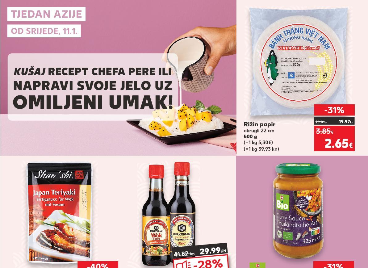 KRATKOTRAJNA PONUDA SUPERCIJENA ONUDA ISPROBAJ MALO E Č RECEPT S PILETIONOM I P Ć ! TAKO JEDNOSTAVAN ZA PRIPREMU I UKUSAN! EGZOTIČNIJI POVRĆEM! PRIPREMU Udon tjestenina ✓dolazi iz Japana, a tradicionalno se radi od pšeničnog brašna, škroba, vode i soli! (=1 kg A 79,87/ KC 67,81 kn) GO-TAN Noodles od riže 250 g (=1 kg A 10,60/ KC 9.- €) SUPER CIJENA -25% 2.65€ 3.55€ 2.25€ -36% 36% 16.95 kn 26.75kn 19.97kn Gotovo jelo Nasi Goreng 750 g Proljetne rolice sa govedinom 400 g (=1 kg 3,54€) (=1 kg 6,63€) SUPER CIJENA-31% 2.65€ 3.89€ SUPER CIJENA-29% 2.65€ 3.75€ TOKYOTO Tjestenina Udon ili Somen 300 g SPRING HAPPINES Tjestenina bez jaja 500 g (=1 kg 4,14€) (=1 kg 2,64€) samo SUPER CIJENA SUPERCIJENA UPER-8% 8% 1.24€ SUPER CIJENA-21% 1.32€ 1.69€ 9.95kn 12.73kn 19.97kn 29.31kn 19.97kn 28.25kn 9.34kn 9.95kn 12.73kn (=1 l 3,30€) Kokosovo mlijeko 400 ml SUPER CIJENA-21% 1.32€ 1.69€ 15.000 PROIZVODA NA NIŽE! (=1 l 24,86 kn) (=1 kg 31,19 kn) (=1 kg 26,67 kn) (=1 kg 19,89 kn) (=1 kg 49,95 kn) KAUFLAND NISKA CIJENA S19-HR-KW02-LFT-AKTF_4_D-1030-11 19