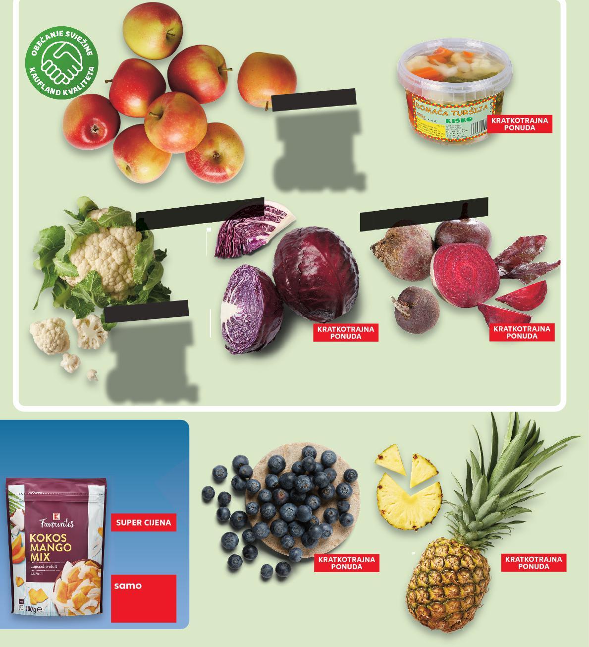 7.46kn 0.99€ samo SUPER CIJENA 7.46kn 0.99€ samo SUPER CIJENA -23% 1.29€ 1.69€ 1.19€ 8.97 kn 12.73kn 9.72kn -29% 29% (=1kg A 97,20/ KC 89,66 kn) Kokos-mango sušeni mix 100 g (=1kg A 12,90/ KC 11,90 €) OD SRIJEDE, 11.1. DO NEDJELJE, 15.1. Cikla 1 kg KISKO Turšija 760g *ocjeđena masa 400g Jabuke jonagold I. klasa 1 kg Cvjetača I. klasa komad (=1 kg 4,98€) SUPER CIJENA samo 0.49€ samo SUPER CIJENA 1.99€ Ananas I. klasa cca. 1,3 kg komad Borovnice u košarici 125 g samo SUPER CIJENA SUPERCIJENA UPER-0% 0% 1.45€ (=1 kg 7,92€) samo SUPER CIJENA SUPERCIJENA UPER-0% 0% 0.99€ 3.69kn 14.99kn 10.93kn 7.46kn IZ DOLINE NERETVE IZ MEĐIMURJA Crveni kupus 1 kg samo SUPER CIJENA 0.49€ 3.69kn HRVATSKI PROIZVOD, HRVATSKA SIROVINA VOĆE I POVRĆE ZAOKRUŽILI SMO REDOVNE CIJENE VIŠE OD (=1 kg 59,67 kn) (=1 kg 37,52 kn) S8-HR-KW02-LFT-OGP_1_L-1030-11 8