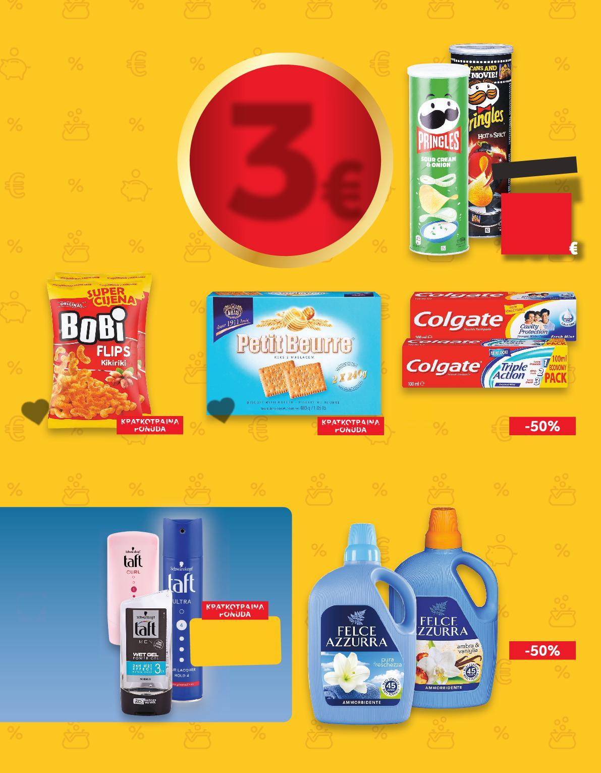 (=1 l A od 11,52 do 38,40/ KC od 10,36 do 34,54 €) TAFT Proizvodi za oblikovanje kose odabrane vrste od 75 do 250 ml (=1 l A od 86,80 do 289,32/ KC od 78,06 do 260,24 kn) SUPER CIJENA -35% 2.88€ 4.49€ 2.59€ -42% 42 19.51 kn 33.83kn 21.70kn 3 L l A od do KC od 78,06 do 260,24 FELCE Omekšivač rublja čista svježina 3 l COLGATE Zubna pasta triple action, cavity fresh mint ili whitening 100 ml (=1 l 0,88€) (=1 l 11,20€) Zubna pasta KRATKOTRAJNA SUPER CIJENAPONUDA 1.12€ 2.25€ 39.86kn SUPER CIJENA 2.64€ 5.29€ 19.89kn 16.95kn 8.44kn KRAŠ Petit Beurre Keksi 480 g (=1 kg 4,42€) 11.98kn 7.99kn (=1 kg 5,89€) SUPER CIJENA-33% 1.06€ 1.59€ BOBI Flips s kikirikijem 2x 90 g SUPER CIJENA-20% 2.12€ 2.65€ 19.97kn 15.97kn -50% -50% PRINGLES Čips razne vrste 165 g (=1 kg 9,64€) 21.02kn 11.98kn kn 1.59 -43% 2.79€ (=1 kg 72,63 kn) (=1 l 84,39 kn) (=1 l 6,63 kn) (=1 kg 44,38 kn) (=1 kg 33,30 kn) KAUFLAND NISKA CIJENA ZAOKRUŽILI SMO REDOVNE CIJENE VIŠE OD SVE DO 3 EURA OD SRIJEDE, 15.2. DO SVE 3€ S6-HR-KW07-LFT-AKTF_2_L-1030-11 6