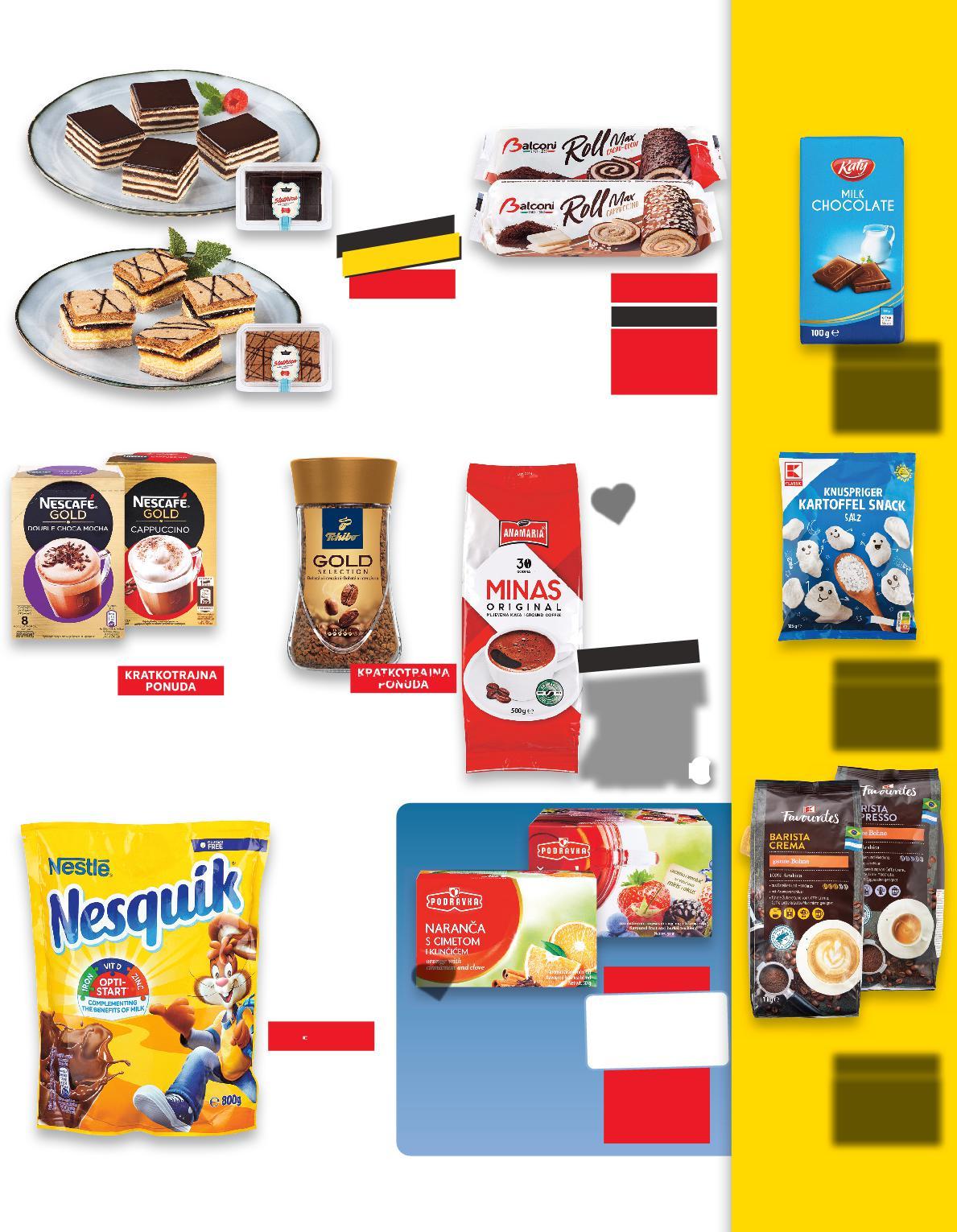 kn ANAMARIJA Mljevena kava Minas 500 g TCHIBO Instant kava Gold Selection 200 g (=1 kg 26,50€) (=1 kg 8,48€) SUPER CIJENA-38% 5.30€ 8.59€ NESQUIK Instant kakao napitak 800 g (=1 kg 4,80€) samo SUPER CIJENA SUPERCIJENA -0%UPER0% 3.84€ 29.76kn 20.27kn 39.93kn 9.95kn 13.94kn 28.93kn (=1 kg 8,97 ili 6,41 €) Medena pita ili Mađarica svježi kolači 300 ili 420 g svježi kolači 300 ili 420 g Mađaric vježi k 4 ađaric vje KRATKOTRAJNA SUPER CIJENAPONUDA -31% 2.69€ 3.95€ (=1 kg 4,40€) BALCONI Rolada kakao ili cappuccino 300 g KRATKOTRAJNA -28% 1.32€ 1.85€ (=1 kg 63,89 kn) (=1 kg 67,58 ili 48,30 kn) (=1 kg 199,66 kn) (=1 kg 33,15 kn) (=1 kg 36,17 kn) (=1 kg 67,58 ili NESCAFE Cappuccino razne vrste 101,5-148 g (=1 kg od 17,03 do 24,83 €) 18.99kn samo SUPER CIJENA SUPERCIJENA UPER-0% 0% 2.52€ 18.99kn (=1 kg od 128,31 do 187,08 kn) PODRAVKA Čaj odabrane vrste 40-60g (=1 kg A od 26,50 do 39,75/ KC od 24,17 do 36,25€) (=1 kg A od 199,66 do 299,50/ KC od 182,11 do 273,13 kn) samo SUPER CIJENA SUPERCIJENA UPER-0% 0% 1.59€ 1.45€ 10.93 kn 11.98kn KAUFLANDA 64.72kn KAUFLAND NISKA CIJENA IJE 31.95kn 4.24€ samo SUPER CIJENA 3 KAUFLAND NISKA CIJENA Snack potato, slani 125 g KATY Mliječna čokolada 100 g Kava zrno, barista crema ili espresso 1000 g (=1 kg 5,80 €) samo 1.59€ 11.98kn samo 0.58€ 4.37kn samo 14.59€ 109.93kn (=1 kg 43,70 kn) (=1 kg 12,72 €) (=1 kg 95,84 kn) 15.000 PROIZVODA NA NIŽE! PEKARSKI PROIZVODI KAVA, ČAJ & INSTANT NAPITCI S23-HR-KW07-LFT-NMP_2_D-1030-11 23