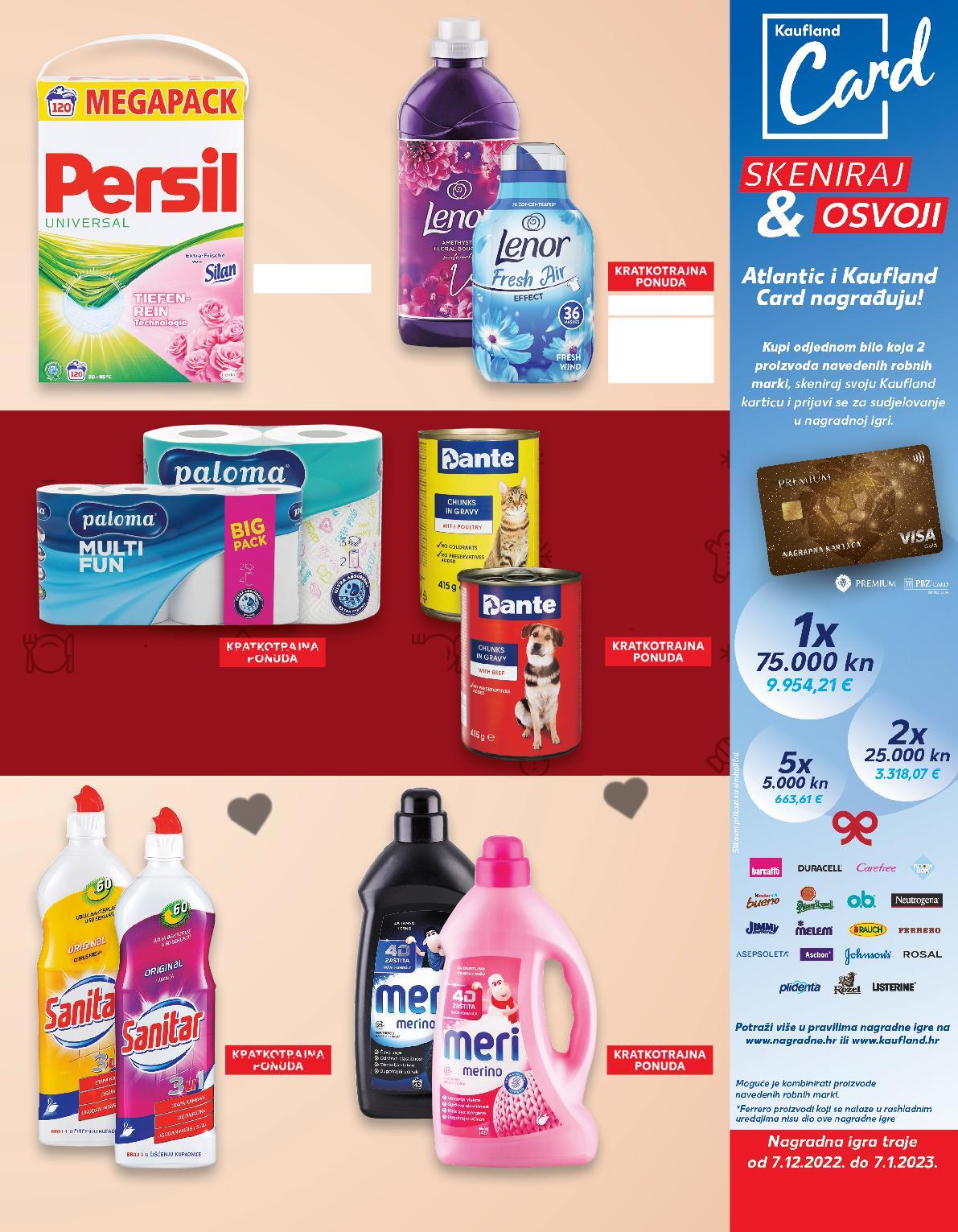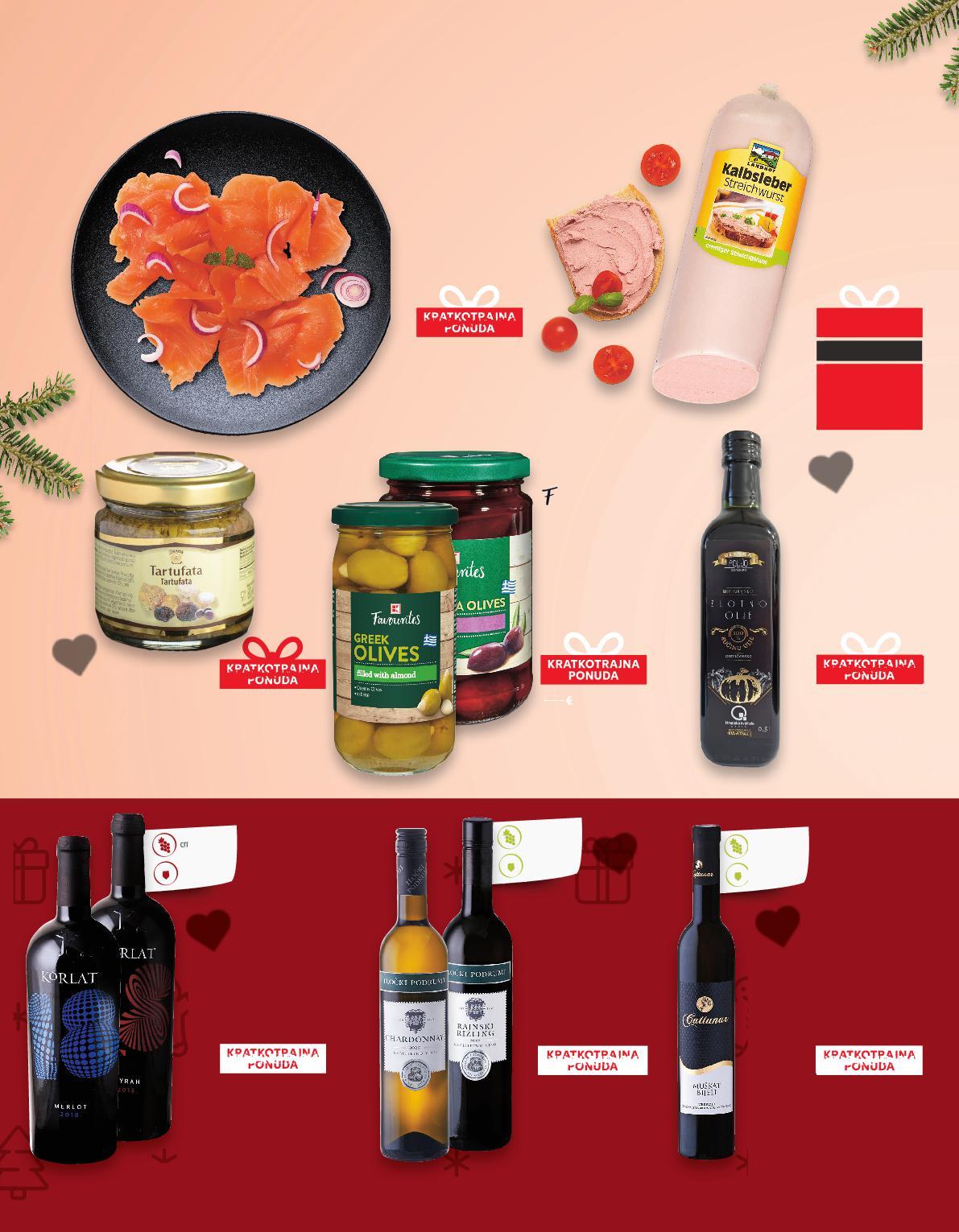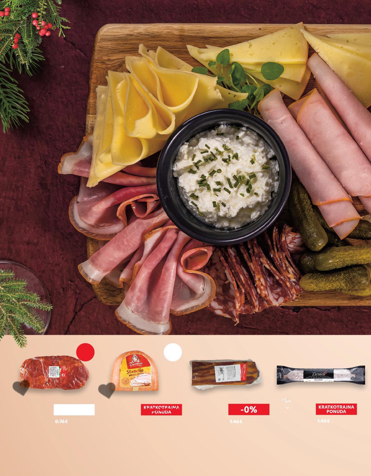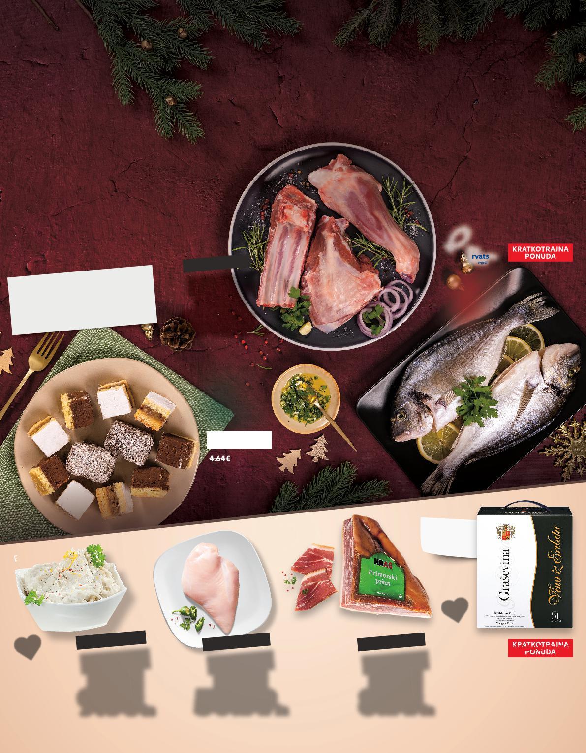 OD PONEDJELJKA, 19.12. DO SUBOTE, 24.12.2022. Kaufland ti donosi 1015 PROIZVODA PO SUPER CIJENAMA! OD 19.12. DO 24.12.2022. Radno vrijeme za blagdane: 24.12. Badnjak od 7:00 do 16:00 25.12. Božić - NE RADIMO 26.12. Sv. Stjepan NE RADIMO ŽELIMO TI BOŽIĆ ISPUNJEN SMIJEHOM, RADOŠĆU I PONEKIM KOLAČIĆEM! bijelo kvalitetno vino 5 L U katalogu su cijene u eurima izražene sukladno fiksnom tečaju konverzije 7.53450 kuna za jedan euro SUPER CIJENA-36% 69.99kn 109.90kn 9.29€ 14.59€ CROMARIS Orada svježe cca 900 g 1 kg Pureći file od prsa 1 kg S USLUŽNOG PULTA S USLUŽNOG PULTA Janjetina trup s glavom 1 kg S USLUŽNOG PULTA 9.28€ 69.89kn samo KRATKOTRAJNA PONUDA 2.48€ 1.33€ 9.99kn -46% 18.69kn Mix kolači svježi 850 g (=1 kg 41,17 kn) (=1 kg 5,46€) Bakalar na bijelo 100 g (=1 kg 99,90 kn) (=1 kg 13,26 €) ERDUT Graševina Hrvatska gastro preporuka: mesne plate bag in box 5 l (=1 l 14.- kn) (=1 l 1,86 €) KRATKOTRAJNA PONUDA SUPERCIJENA KRATK AJNA SUPER CIJENAONUDAUPERPONUD ONUD TKOTRAJNA 0% UPERCIJENA TKOTRCIJE A samo 34.99kn 4.64€ samo SUPER CIJENA SUPERCIJENA UPER-0% 0% 70.99kn 9.42€ KRAS Primorski pršut trajni proizvod 100 g (=1 kg 89,90 kn) (=1 kg 11,93 €) S USLUŽNOG PULTA 1.19€ 8.99kn samo KRATKOTRAJNA PONUDA 6.77€ 50 50.99kn samo KRATKOTRAJNA PONUDA S1-HR-KW51-LFT-TS-1030-11