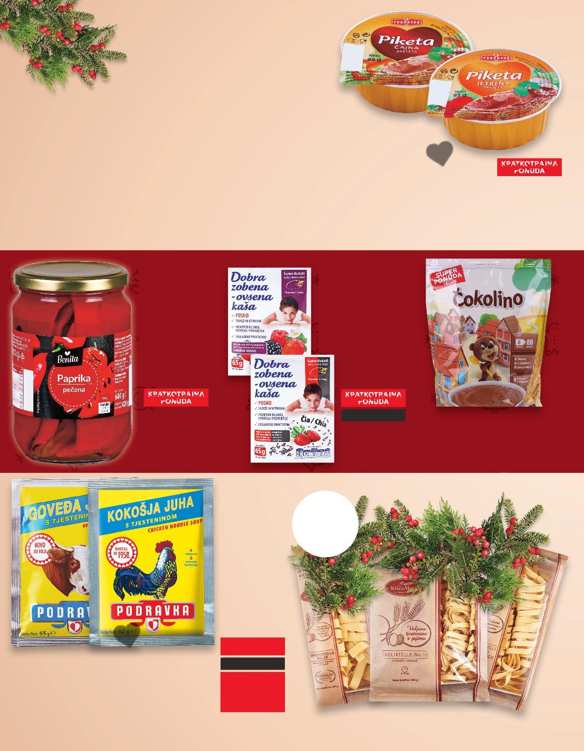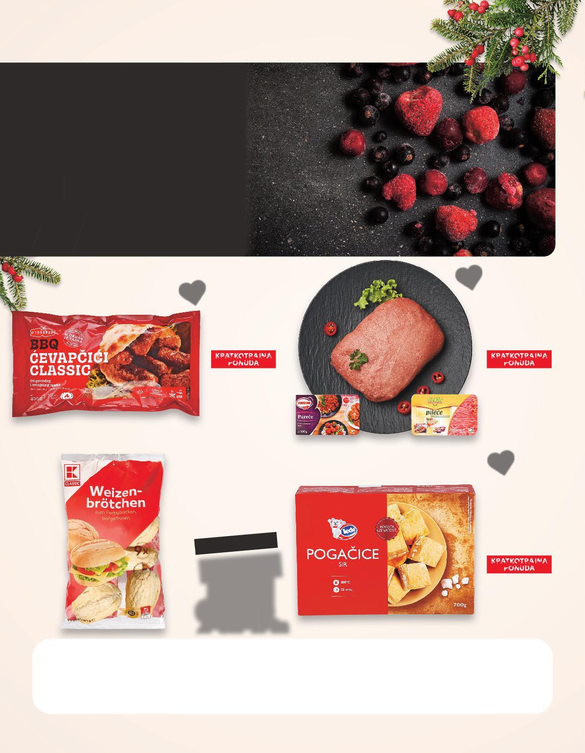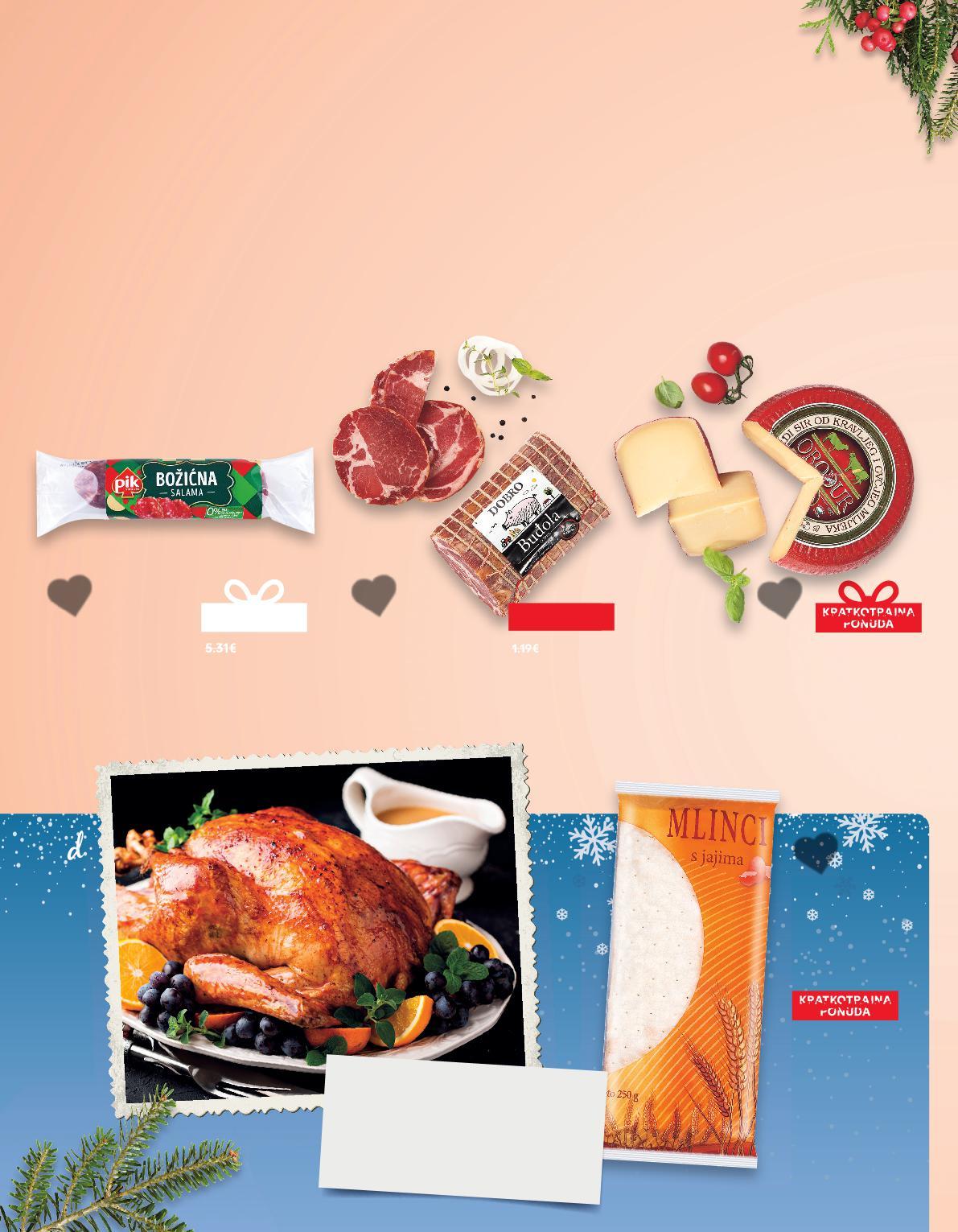 OD PONEDJELJKA, 19.12. BLAGDANSKI STOL I DELICIJE KAD POŽELIŠ SAVRŠENE BLAGDANE, DOBIJEŠ PUN STOL I DRAGE LJUDE OKO NJEGA! PO I AV E E 5.31€ 1.33€ 1.99€ 1.59€ (=1 kg 119,90 kn) SUPER CIJENA-20% 11.99kn 14.99kn VINDIJA Orodur tvrdi sir od kravljeg i ovčjeg mlijeka 45% m.m. 100 g (=1 kg 114,26 kn) KRATKOTRAJNA PONUDA samo SUPERCIJENA KRATK AJNA SUPER CIJENAONUDAUPERPONUD ONUD TKOTRAJNA 0% UPERCIJENA TKOTR 39.99kn PIK Božićna salama trajni proizvod 350 g (=1 kg 99,90 kn) KRATKOTRAJNA PONUDA samo 9.99kn DOBRO Buđola trajni proizvod 100 g (=1 kg 15,16€) (=1 kg 13,26 €) (=1 kg 15,91 €) ✓laganog i blagog okusa, mekše teksture ✓ne sadrži pojačivače okusa, umjetna bojila, gluten i soju IZ RASHLADNE VITRINE S USLUŽNOG PULTA S USLUŽNOG PULTA ✓umjereno pikantne note (=1 kg A 3,18/ KC 2,65 €) Mlinci s jajima 250 g (=1 kg A 23,96/ KC 19,96 kn) SUPER CIJENA -45% 5.99kn 10.99kn 4.99kn -54% 54 0.66€ 1.46€ 0.80€ “Zagorski mlinci” su 2019. godine dobili europsku zaštićenu oznaku zemljopisnog podrijetla. Zaštita naziva je priznanje hrvatske kvalitete i tradicije. S2-HR-KW51-LFT-AKTF_1_L-1030-11 2