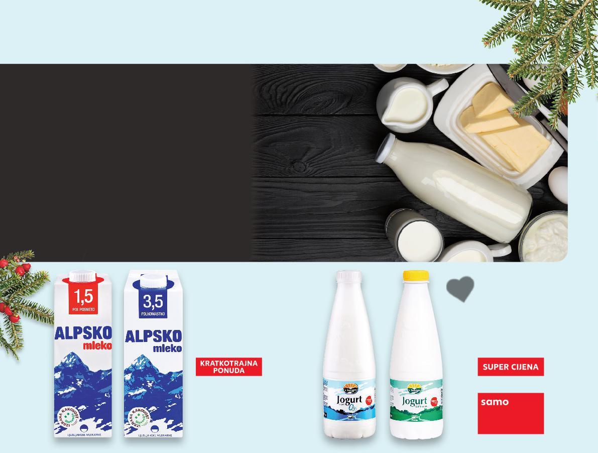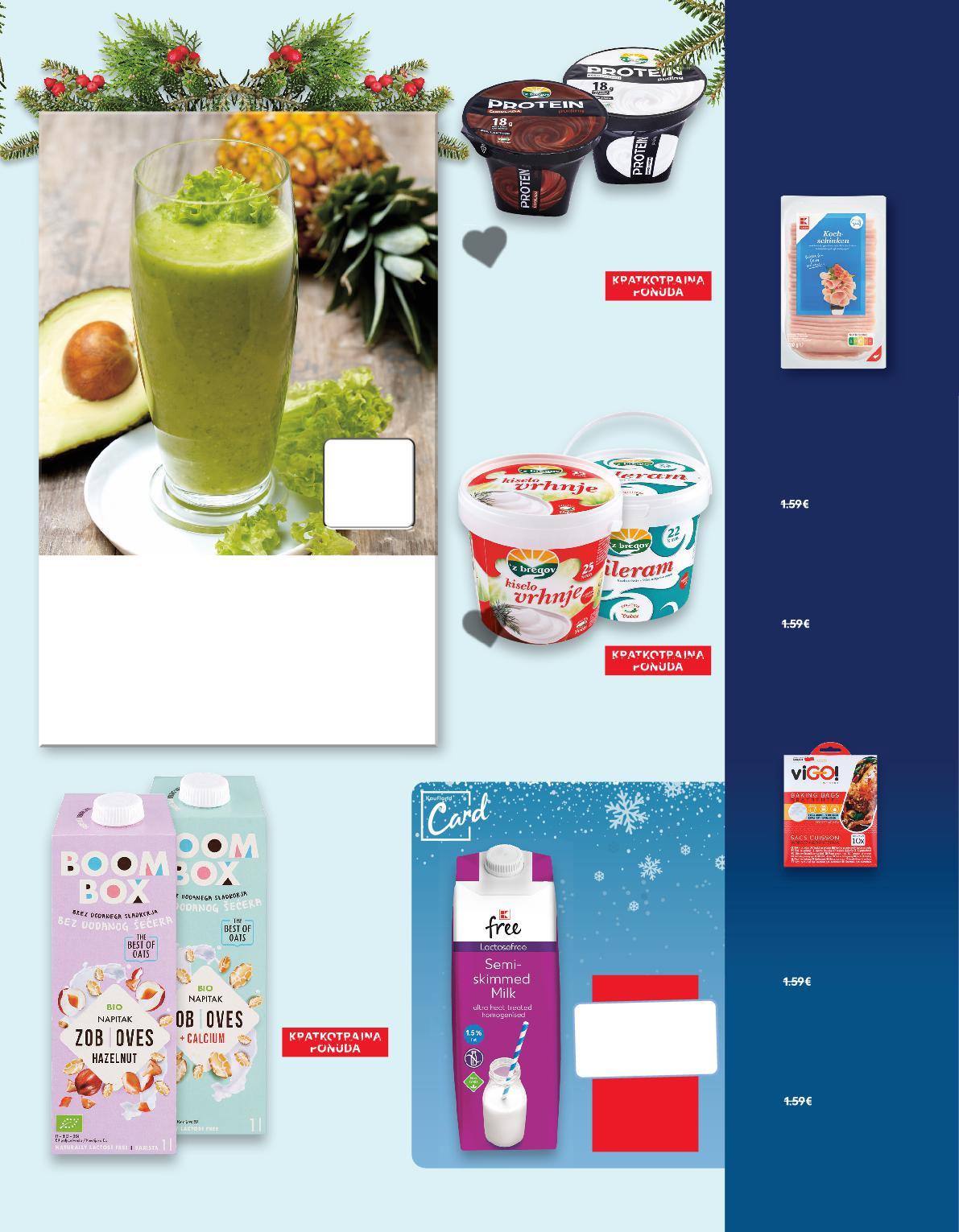 KRATKOTRAJNA PONUDA OD PONEDJELJKA, 19.12. Nudimo ti više od 830 raznovrsnih mliječnih proizvoda za sve prigode! MEGGLE Vrhnje za kuhanje 20% m.m. 0,5 L (=1 l 35,98 kn) Alpsko mlijeko trajno 1,5% ili 3,5% m.m. 1 L samo SUPER CIJENA SUPERCIJENA UPER-0% 0% 9.99kn 1.33€ B.AKTIV LGG jogurt natur ili jagoda 2,4% m.m. tetrapak ili PET 1 kg samo SUPER CIJENA SUPERCIJENA UPER-0% 0% 14.99kn 1.99€ `Z BREGOV Tekući jogurt 2,8% ili 0,9% m.m. 1000 g -10% 13.49kn 1.79€ 1.99€ I ovih blagdana uživaj u našem bogatom mliječnom asortimanu! Mlijeko, jogurti, vrhnja… samo su neki od naših odabira za najfinije blagdanske trenutke. KAUFLAND NISKA CIJENA 3.18€ 2.39€ 17.99kn -25% 23.99kn (=1 l 4,78€) 14.99kn MLIJEČNI PROIZVODI S40-HR-KW51-LFT-FRP_2_L-1030-11 40