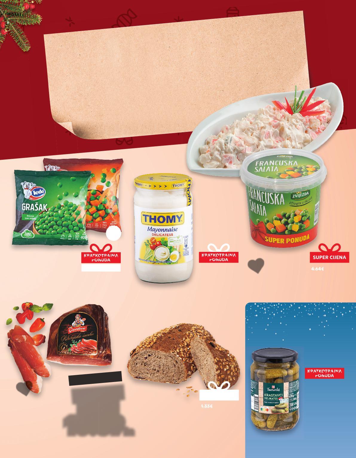 5 RAZLOGA Njena priprema ima terapijski učinak. Slaže se sa svime na blagdanskom stolu. Svi oko blagdanskog stola se slažu s njom. Možeš je jesti danima Ne postoji loša francuska salata.* 1. 2. 3. 4. 5. zašto svi vole francusku salatu Svi oko blagdanskog stola se slažu s njom. Mož i danima. Ne ta * *iako je mamina uvjerljivo najbolja LEDO Smrznuto povrće grašak, grašak-mrkva ili povrće za francusku salatu 400 g THOMY Majoneza delikates 611 g ZVIJEZDA Francuska salata 1 kg (=1 kg 24,98 kn) (=1 kg 40,90 kn) Smrznuto povrće SUPER CIJENA-16% 9.99kn 11.99kn SUPER CIJENA-22% 24.99kn 32.39kn KRATKOTRAJNA PONUDA samo 39.99kn 1.33€ 1.59€ 3.32€ 4.30€ 5.31€ (=1 kg 3,32€) (=1 kg 5,43€) (=1 kg A 4,93/ KC 4,55 €) Krastavac delikates 670 g *ocijeđena masa 350 g (=1 kg A 37,12/ KC 34,26 kn) SUPER CIJENA -21% 12.99kn 16.49kn 11.99kn 1.59€ 2.19€ 1.72€ -27% 27 IZ RASHLADNE VITRINE IZ RASHLADNE VITRINE Kruh s brusnicama 360 g (=1 kg 27,75 kn) KRATKOTRAJNA PONUDA samo SUPERCIJENA KRATK AJNA SUPER CIJENAONUDAUPERPONUD ONUD TKOTRAJNA 0% UPERCIJENA TKOTR 9.99kn 1.33€ (=1 kg 3,68€) ✓s dodatkom brusnica, mljevenog rogača, meda i začina IZ NAŠE PEKARE GAVRILOVIĆ Petrinjska šunka trajni proizvod 100 g (=1 kg 108,90 kn) (=1 kg 14,45 €) S USLUŽNOG PULTA 2.39€ 1.45€ šunka 10.89kn -39% 17.99kn KAUFLAND NISKA CIJENA S3-HR-KW51-LFT-AKTF_1_D-1030-11 3