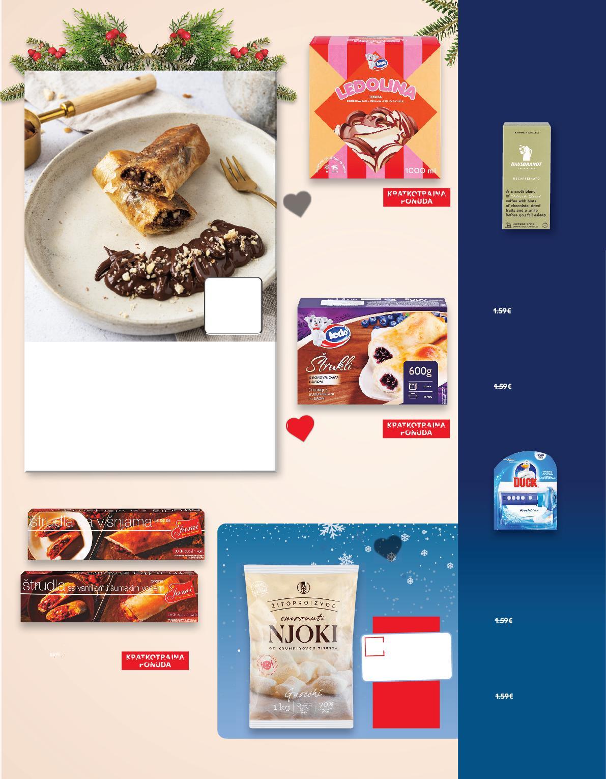OD 1.1.2023. ZAOKRUŽUJEMO CIJENE NA NIŽE! FER TRANSFER 29.99 kn 29.76 kn 3.98€ 3.95€ DUCK Osvježivač WC školjke marine, lime ili lavanda 36 ml OD 1.1. 27.99 kn 27.80 kn 3.71€ 3.69€ OD 1.1. SADAŠNJA CIJENA SADAŠNJA CIJENA HAUSBRANDT Kapsule razne vrste 50 g Zbog velike količine, cijene proizvoda postupno će se zaokruživati od 1. do 10. siječnja 2023. LEDO Štrukli s borovnicama i sirom smrznuto 600 g (=1 kg 38,32 kn) SUPER CIJENA-17% 22.99kn 27.99kn 3.05€ 3.71€ 1.86€ 3.05€ (=1 kg 27,98 kn) JAMI Štrudla vanilija-šumsko voće ili s višnjama smrznuto 500 g SUPER CIJENA-39% 13.99kn 22.99kn (=1 kg 3,71€) Napravi domaće štrudle od čokolade ili jabuke! Ako nemaš vremena, ispeci naše gotove koje su također neopisivo ukusne! LEDO Torta Ledolina smrznuto 650 g (=1 kg 84,60 kn) SUPER CIJENA-21% 54.99kn 69.99kn 7.30€ 9.29€ (=1 kg 11,23€) (=1 kg 5,09€) SUPER CIJENA -42% 11.99kn 20.99kn 10.99kn -47% 47 1.46€ 2.79€ 1.59€ ŽITOPROIZVOD Njoki smrznto 1 kg S43-HR-KW51-LFT-WUKAP_3_D-1030-11 43