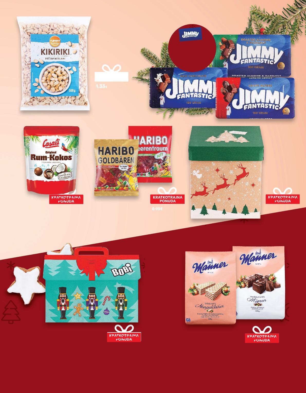 Božićna poklon kutija 684 g SUPER CIJENA-20% 39.99kn 49.99kn 6.63€ 5.31€ (=1 kg 68,52 kn) CASALI Dražeje čokoladne punjene rumom i kokosom 175 g (=1 kg 9,09€) BOBI Prigodni paket grickalica 535 g SUPER CIJENA-25% 31.99kn 42.99kn 5.71€ 4.25€ HARIBO Bomboni gumeni razne vrste 100 g (=1 kg 69,90 kn) samo SUPER CIJENA SUPERCIJENA UPER-0% 0% 6.99kn 0.93€ (=1 kg 9,28 €) MANNER Napolitanke odabrane vrste 300 ili 400 g (=1 kg 63,30 ili 47,48 kn) SUPER CIJENA-29% 18.99kn 26.99kn 3.58€ 2.52€ (=1 kg 8,40 ili 6,30€) 2.92€ 1.59€ 11.99kn 21.99kn SUPER CIJENA-45% ✓ sa slatkišima ČOKOLADE DO -25% YUMMY Kikiriki pečeni neslani 500 g (=1 kg 19,98 kn) KRATKOTRAJNA PONUDA samo SUPERCIJENA KRATK AJNA SUPER CIJENAONUDAUPERPONUD ONUD TKOTRAJNA 0% UPERCIJENA TKOTRCIJE A 9.99kn 1.33€ (=1 kg 2,65€) S13-HR-KW51-LFT-AKTF_6_D-1030-11 13