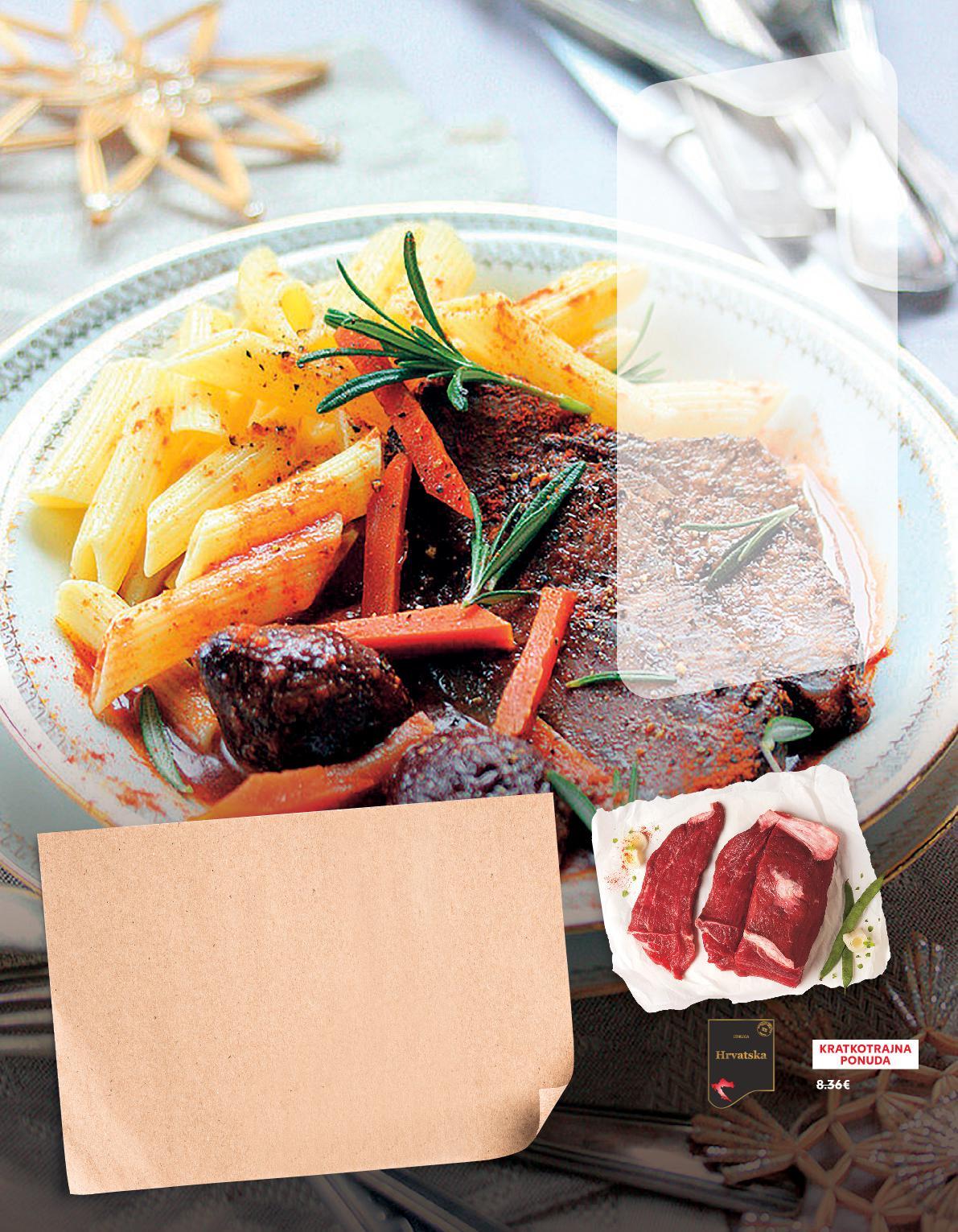 Znaš li da je muflon vrsta divlje ovce? ✓ mariniranjem meso postaje mekše ✓ može se kuhati ili pirjati ✓ odlično za pripremu gulaša ili ragua 2.65€ (=1 kg 44,43 kn) Č STA KVAL TETA samo SUPER CIJENA SUPERCIJENA UPER-0% 0% 19.99kn Juneće mljeveno meso 450 g (=1 kg 5,90€) I ovih blagdana uživaj u okusima i mirisima domaćih mesnih specijaliteta! Donosimo ti vrhunsku domaću junetinu, meso muflona, janjetinu, piletinu, puricu... i odličan recept! Znaš li da je muflon vrsta ovce? 3.98€ (=1 kg 85,69 kn) KRATKOTRAJNA PONUDA samo SUPERCIJENA KRATK AJNA SUPER CIJENAONUDAUPERPONUD ONUD TKOTRAJNA 0% UPERCIJENA TKOTR 29.99kn (=1 kg 11,37€) PIK Gurmanska kobasica 600 g (=1 kg 39,99 kn) (=1 kg 39,99 kn) 9,99 KRATKOTRAJNA PONUDA SUPERCIJENA KRATK AJNA SUPER CIJENAONUDAUPERPONUD ONUD TKOTRAJNA 4% UPERCIJENA TKOTR samo 23.99kn 3.18€ (=1 kg 5,31€) NIMROD Meso muflona za gulaš, marinirano 350 g KAUFLAND NISKA CIJENA Minutni odrezak 400 g (=1 kg 49,73 kn) samo SUPER CIJENA SUPERCIJENA UPER-5% 5% 19.89kn 2.64€ (=1 kg 6,60€) KAUFLAND NISKA CIJENA OD PONEDJELJKA, 19.12. SVJEŽE MESO IZ SAMOPOSLUGE S30-HR-KW51-LFT-FLP_2_L-1030-11 30