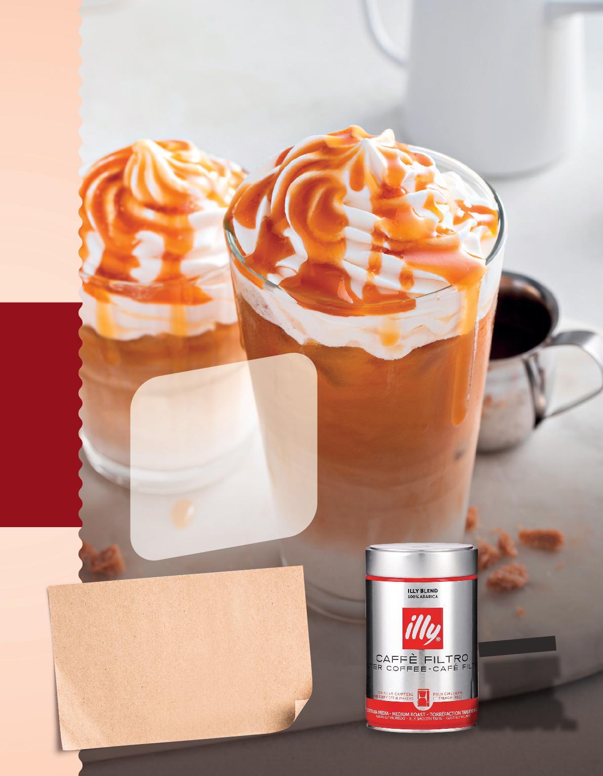 S KARAMELOM Cafè latte Za ovaj napitak odaberi šalice od stakla. Skuhaj dva espressa i ulij u svaku šalicu po jedan. Zagrij mlijeko s tri žlice karamel umaka i dobro promiješaj pa zapjeni električnom mješalicom za cappuccino. Ulij preko kave pa na vrh dodaj tučeno slatko vrhnje. PRIPREMA: 2 šalice 60 ml espresso kave 700 ml punomasnog mlijeka 3 žlice karamel umaka tučeno slatko vrhnje SASTOJCI: ✓ klasično ili snažno pržene kave dugotrajne arome ILLY Mljevena kava razne vrste 100% arabica 250 g (=1 kg 199,96 kn) (=1 kg 26,54€) 6.63€ 49.99kn samo SUPER CIJENA S15-HR-KW51-LFT-NMP_1_D-1030-11 15