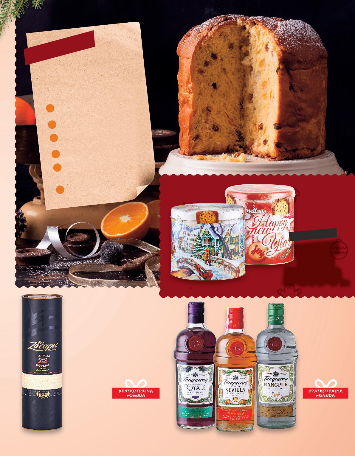 ANATOMIJApanettone kolača kandirane naranče i grožđice specifičan kupolasti oblik spužvasta i mekana unutrašnjost posut šećerom u prahu svečano pakiranje čini ga idealnim darom domaćinima odličan uz kavu ili vino Panettone Kolač s maslacem, u limenci 1000 g ZACAPA Rum Centenario 23 udio alkohola 40% 0,7 l TANQUERAY Gin blackcurrant, sevilla ili rangpur udio alkohola od 30% do 41,3% 0,7 l (=1 l 642,72 kn) (=1 l 214,15 kn) sevilla ili rangpur SUPER CIJENA-15% 449.90kn 529.90kn SUPER CIJENA-30% 149.90kn 214.90kn 59.71€ 70.33€ 19.90€ 28.52€ (=1 l 85,30€) (=1 l 28,42€) 80. -kn 10.62€ 10.62€ 7.56€ 56.99kn -28% 79.99kn ✓sazrijeva na 2.300 metara nadmorske visine S7-HR-KW51-LFT-AKTF_3_D-1030-11 7