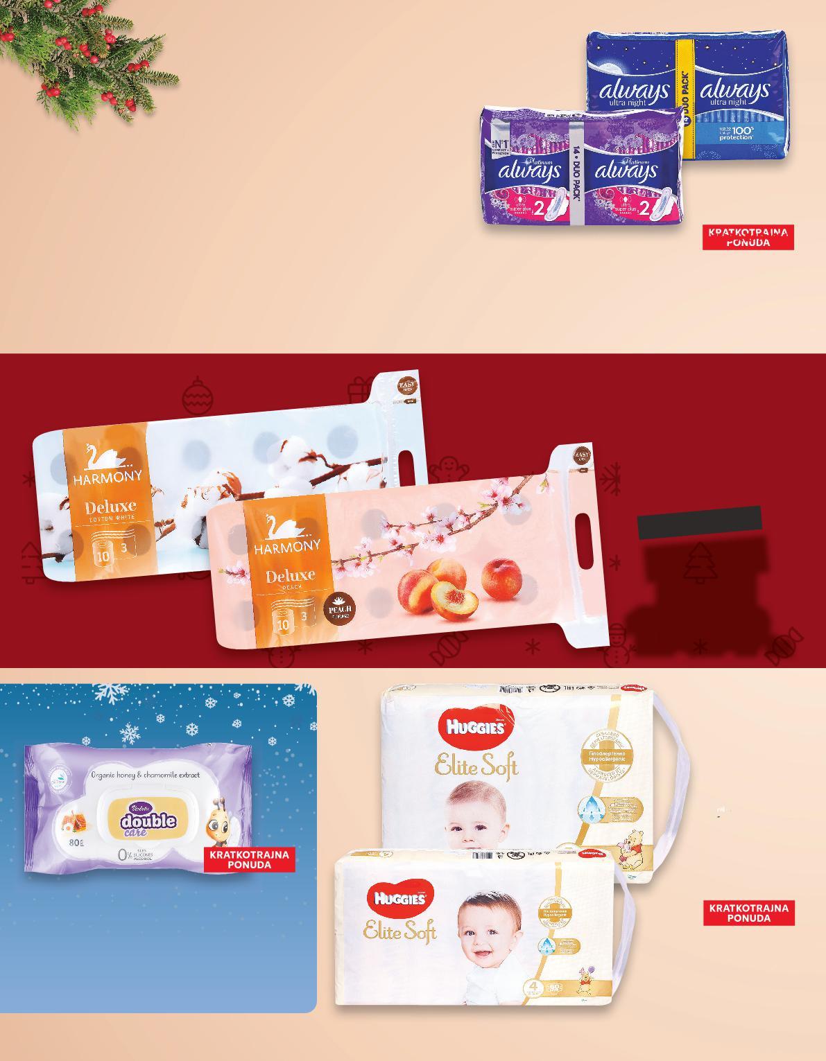 samo SUPER CIJENA SUPERCIJENA UPER-0% 0% 12.99kn 11.99kn 1.59€ 1.72€ POSEBNA PONUDA OD PONEDJELJKA, 19.12. HUGGIES Pelene Elite soft veličine 3, 4 i 5 pakiranje 72, 60 ili 50 komada (= komad od 1,04 do 1,49 kn) veličine 4 i 5 pakiranje 72, 60 ili SUPER CIJENA SUPERCIJENA UPER-0% 0% samo 74.49kn 9.89€ (= komad od 0,14 do 0,20 €) SUPER CIJENA-30% 17.99kn 25.99kn 3.45€ 2.39€ ALWAYS Higijenski ili dnevni ulošci razne vrste pakiranje od 10 do 74 komada (= komad od 0,25 do 1,80 kn) (= komad od 0,03 do 0,24 €) IMAMO TOGA JOŠ U NAŠOJ BLAGDANSKOJ PONUDI! (=komad A 0,02/ KC 0,02 €) VIOLETA Vlažne maramice za djecu sa ekstraktom organskog meda i kamilice pakiranje od 80 komada (=komad A 0,17/ KC 0,15kn) (=rola 1,80 kn) HARMONY Toaletni papir troslojni, white ili miris breskve pakiranje od 10 rola (=rola 0,24€) 5.84€ 2.39€ 17.99kn -59% 43.99kn S46-HR-KW51-LFT-AKTF_9_L-1030-11 46