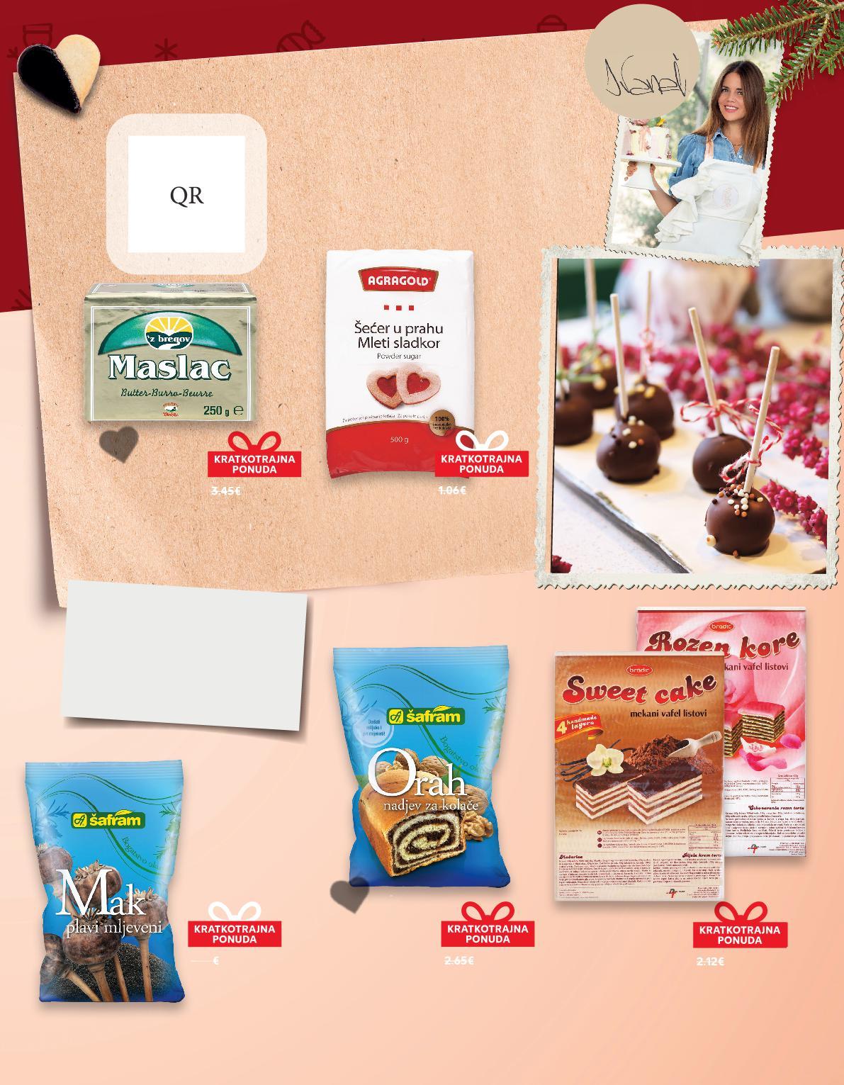SAVJET: Sol u kolačima balansira okuse i posebno ističe okus čokolade. Skeniraj QR kod i otkrij recept za preslatke blagdanske kolačiće na štapiću koji su gotovi dok kažeš kolačić! RECEPT: S ČOKOLADOM I PEKMEZOM OD ŠLJIVA Brownie cake pops PECIS IVANOM BRADIĆ Kore za kolače razne vrste 430 - 450 g (=1 kg od 33,32 do 34,87 kn) samo SUPER CIJENA SUPERCIJENA UPER-6% 6% 14.99kn 1.99€ (=1 kg od 4,42 do 4,63 €) 2.12 ŠAFRAM Mak mljeveni, plavi 200 g ŠAFRAM Nadjev od oraha za kolače 200 g (=1 kg 59,95 kn) samo SUPER CIJENA SUPERCIJENA UPER-25% 25% UPERCIJENA 11.99kn (=1 kg 69,95 kn) samo SUPER CIJENA SUPERCIJENA UPER-30% 30% 13.99kn 1.59€ 1.86€ (=1 kg 7,96€) (=1 kg 9,28€) AGRAGOLD Šećer u prahu 500g (=1 kg 13,18 kn) samo SUPER CIJENA SUPERCIJENA UPER-17% 17% 6.59kn 0.87€ (=1 kg 1,75€) 3.05€ (=1 kg 91,96 kn) samo SUPER CIJENA SUPERCIJENA UPER-11% 11% UPERCIJENA 22.99kn `Z BREGOV Maslac 84% m.m. 250 g (=1 kg 12,21€) IZ RASHLADNE VITRINE S9-HR-KW51-LFT-AKTF_4_D-1030-11 9