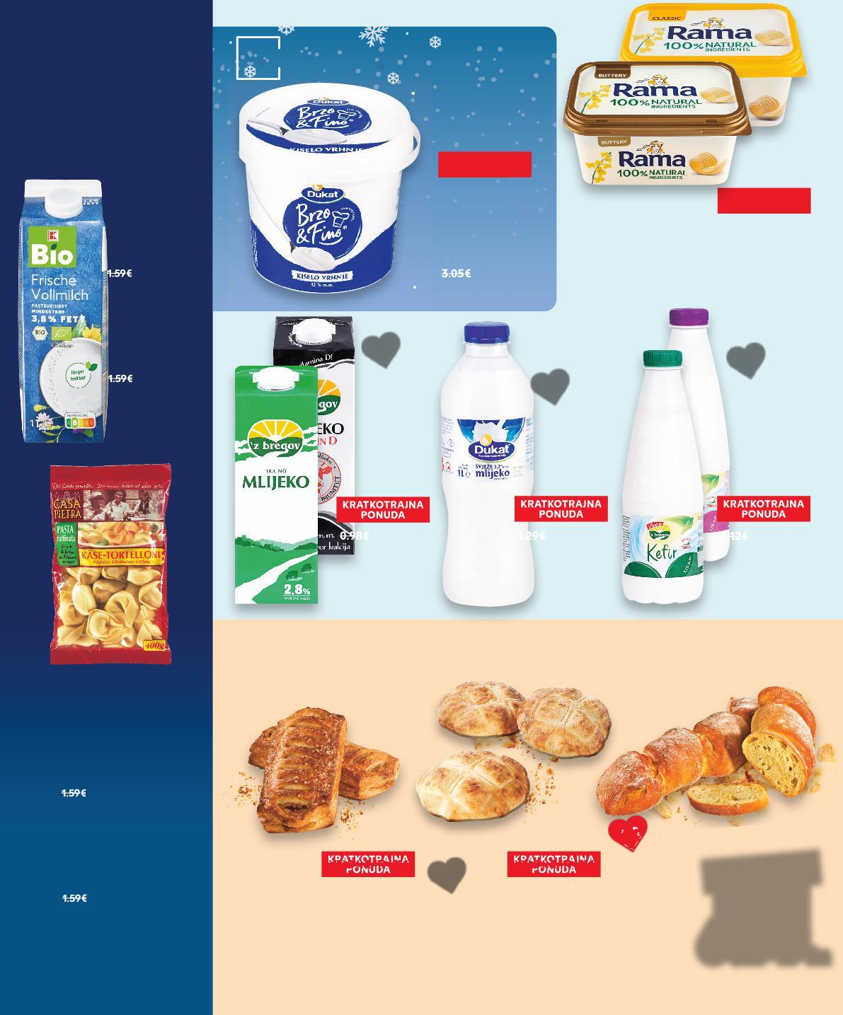 PEKARA OD SRIJEDE, 28.12. OD 1.1.2023. ZAOKRUŽUJEMO CIJENE NA NIŽE! FER TRANSFER 19.79 kn 19.51 kn 2.63€ 2.59€ CASA PIETRA Tortelloni sa sirom 400 g OD 1.1. 9.49 kn 9.42 kn 1.26€ 1.25€ Svježe mlijeko 3,8% m.m. tetrapak 1 L OD 1.1. SADAŠNJA CIJENA SADAŠNJA CIJENA Zbog velike količine, cijene proizvoda postupno će se zaokruživati od 1. do 10. siječnja 2023. ✓ ručno rađen ✓ bogat sjemenkama suncokreta Zlatni korijen kruh od kukuruznog i bijelog brašna 300 g Mini somun 80 g Lisnato pecivo s višnjom ili jabukom 104 g (=1 kg 23,30 kn) (=1 kg 16,13 kn) (=1 kg 23,95 kn) SUPER CIJENA-34% 1.29kn 1.96kn SUPER CIJENA-37% 2.49kn 3.99kn RAMA Margarin classic ili s maslacem 400 g (=1 kg 27,48 kn) KRATKOTRAJNA PONUDA -35% 10.99kn 16.99kn `Z BREGOV Trajno mlijeko obično ili s dodatkom vitamina D 2,8% m.m. 1 L DUKAT Svježe mlijeko 3,2% m.m. 1 L `Z BREGOV Acidofilno mlijeko ili kefir 3,2% ili 3,5% m.m. 1000 g samo SUPER CIJENA SUPERCIJENA UPER-3% 3% 7.09kn samo SUPER CIJENA SUPERCIJENA UPER-7% 7% UPERCIJENA 8.99kn samo SUPER CIJENA SUPERCIJENA UPER-18% 18% UPERCIJENA 14.99kn 0.26€ 0.17€ 0.33€ 0.53€ 1.46€ 2.25€ 0.94€ 1.19€ 1.99€ (=1 kg A 3,39/ KC 3,10 €) Brzo&Fino Kiselo vrhnje, 12% m.m. 900 g (=1 kg A 25,55/ KC 23,33 kn) 1.33€ 0.93€ od i 6.99kn -30% 9.99kn (=1 kg 3,09€) (=1 kg 2,14€) (=1 kg 3,18€) (=1 kg 3,65€) 35% samo SUPER CIJENA SUPERCIJENA UPER-17% 17% 22.99kn 3.05€ 20.99kn 2.79€ MLIJEČNI PROIZVODI S20-HR-KW52-LFT-FRP_1_L-1030-04 20