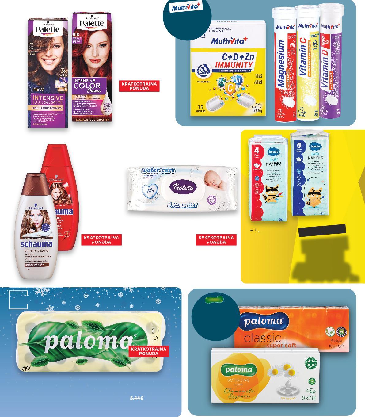 DODACI PREHRANI -25% PAPIRNATE MARAMICE -50% SCHAUMA Šampon za kosu razne vrste 400 ml VIOLETA Vlažne maramice za djecu water care pakiranje od 56 komada BEVOLA Pelene razne veličine pakiranje od 44 do 56 komada (=1 l 47,48 kn) (= komad 0,22 kn) (= komad od 0,81 do 1,03 kn) VIOLE SUPER CIJENA-29% 18.99kn 26.75kn SUPER CIJENA-36% 11.99kn 18.76kn 3.05€ 3.55€ 2.52€ 2.49€ 1.59€ samo SUPER CIJENA SUPERCIJENA UPER-23% 23% UPERCIJENA 22.99kn PALETTE Boja za kosu Intensive color creme razne vrste komad 7.55€ 5.97€ od 44 do 56 44.99kn -20% 56.89kn (=1 l 6,30€) (= komad 0,03 €) (= komad od 0,11 do 0,14€) PALOMA Toaletni papir pakiranje od 10 rola (=komad A 1,90/ KC 1,70 kn) (=komad A 0,26/ KC 0,23€) KAUFLAND NISKA CIJENA SUPER CIJENA 18.99kn 2.52€ samo 16.99kn -10% 10% 2.25€ DROGERIJA OD SRIJEDE, 28.12. S22-HR-KW52-LFT-DRP_1_L-1030-04 22